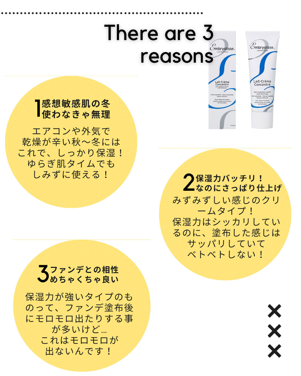 お値段は正直お高いですが…1度は使って欲しい下地。 1番のオススメポイントが、夜のクレンジングの時! 数々の賞を受賞した、大人気下地です。 これに関してオススメしたいポイントが何点かあって… ①保湿効果!真冬でエアコンや外気で、すぐ乾燥してしまうですが…これ1本で1日気にせず過ごせたのが嬉しい! ②使用感!これは本当に軽くてしっとりしてくれるので、ノーファンデの日はサンシェルター トーンアップCCとパウダーだけで過ごすこともあります。 ③価格!このクオリティーで¥3,300は安くない?そこら辺の日焼け止めと変わらぬお値段なのもいい! 以前、ヘアメイクアーティストの「兵藤小百合さん」にファンデーション塗布するとモロモロが出る場合、どうしたらいいですか?とご相談させて頂いた際に… その時に兵藤小百合のYouTubeでサラサラなのに保湿力が高いアイテムとして紹介されてたのがアンブリオリス モイスチャークリーム! これを使い始めてから、乾燥はしない・モロモロでないと悩みが解消された救世主アイテム!
