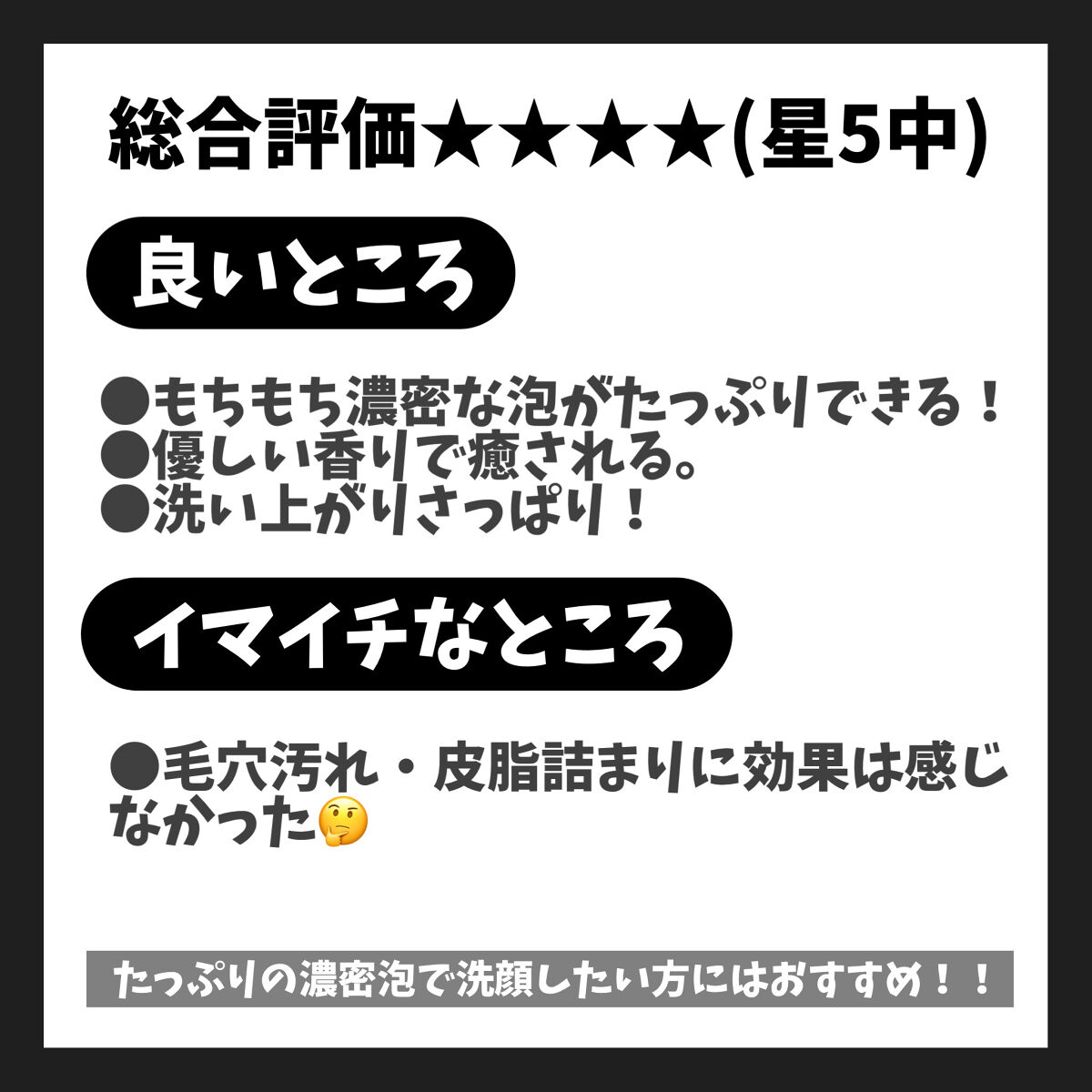 テカリ&毛穴目立ち&肌荒れにアプローチできるパックです☺️ 美容液もたっぷり153ml入っていて、パックも少し厚みのある凸凹のシートなんですけど、特に液だれしたり剥がれたりはしないです( 。•ω•。 ) 毛穴の黒ずみやざらつき・くすみをオフし、テカリケア&ニキビ予防ができるとのこと。洗顔ネットで泡立てると、弾力のあるもこもこ泡(逆さにしても落ちない)ができます( ^o^ ) 公式的にも、洗顔とパックのライン使いがオススメみたいです(^ω^) 特に可もなく不可もなくな感じですが、値段的にも使用感的にもなんかリピしちゃうな〜な商品でした🤣