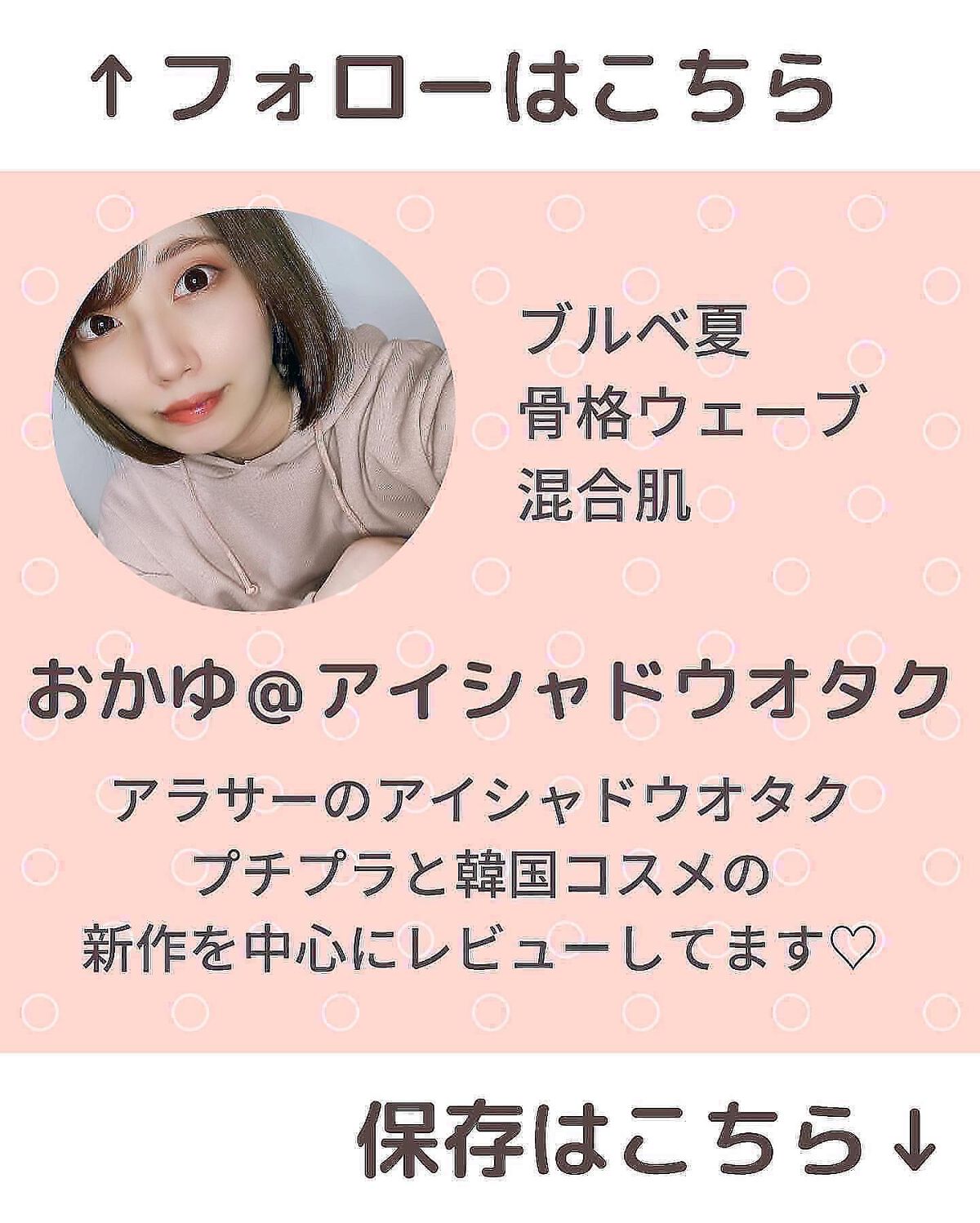 私はくすみ系のピンクの方が似合うのですがくすみ感が得意じゃない方はぜひミルキー系のピンクアイシャドウも試して見て欲しいです🥰 ミックスブラーリングアイパレット→こちらはベスコスにも選んだアイパレット!夕焼けのようなくすみ感、そして意外と使いやすい落ち着いたピンク&レッドカラーがお気に入り! プロアイパレット→最近新色として追加された13合になります。ニュートラルなカラーですが、この絶妙なピンクはブルベさんにピッタリです。 べターザンパレット→こちらはthe ミルキー!なピンクアイシャドウ本当にいちごミルクみたいな色合いです。 マイフェイブムードアイシャドウ→こちらは色がはっきりとしたミルキー系のピンクパレットパッと印象が明るくなるピンクで、カラーメイクを楽しみたい方にオススメ。雲みたいに軽くてふわふわの粉質は一度体験して欲しい! 今回の4つは本当にオススメのものを選んでますので、少しでも参考になれば嬉しいです!ぜひ保存してお買い物メモ代わりにしてくださいね😍