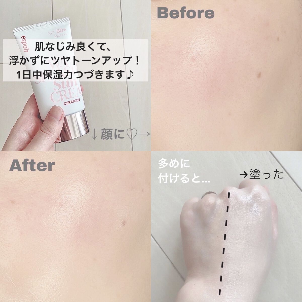 シカトーンアップ、思ったよりトーンアップしてびっくり! 時間経ったら馴染んでてよかったです。 香りがまあまあ残るタイプなので苦手な人は注意。 ツヤ好き、下地にカバー力求めてない、高保湿だったらセラミド💘 トーンアップしてほしい、表面ベタベタ苦手だったらシカトーンアップ💘