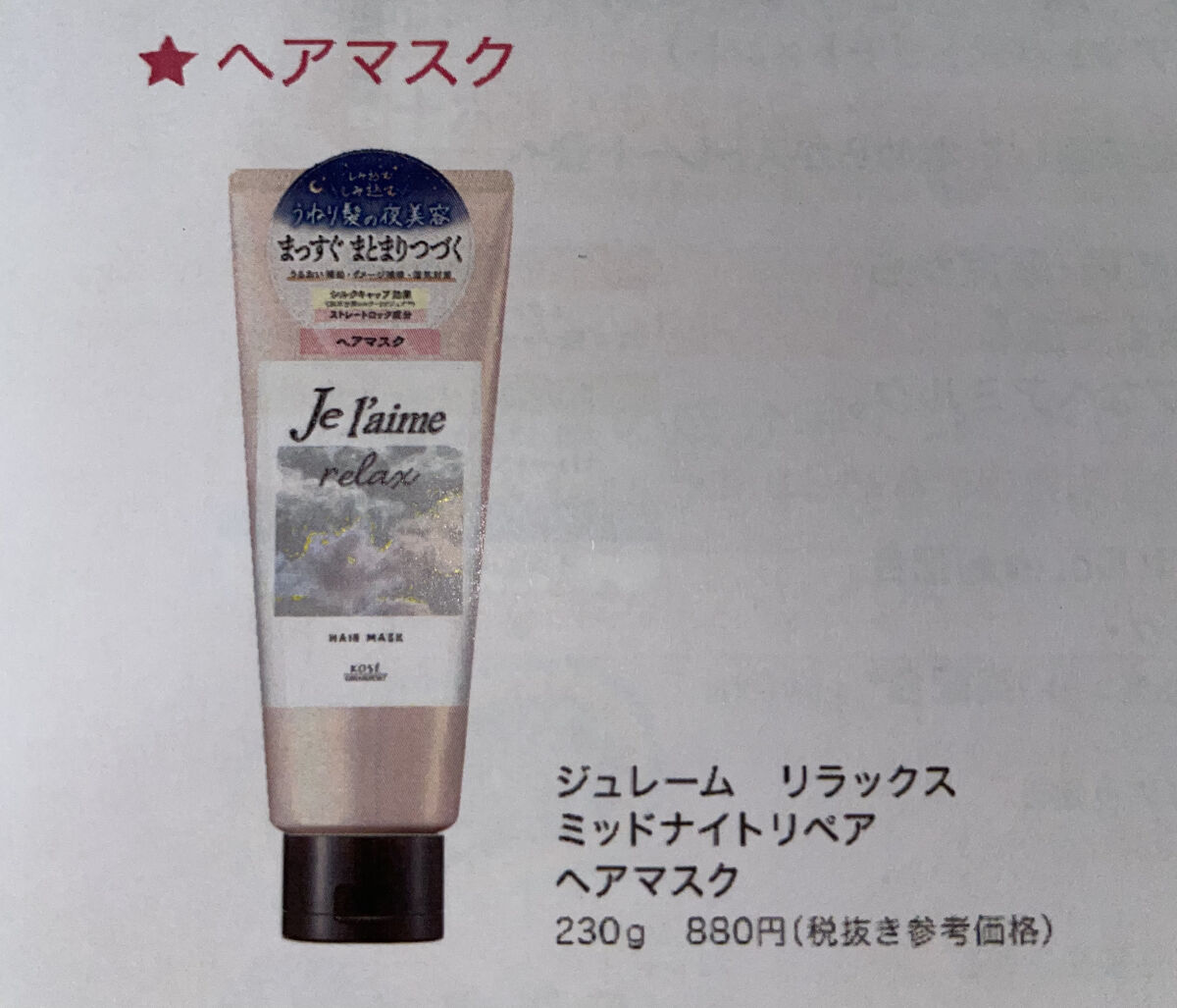Je l'aime リラックス ミッドナイトリペア シャンプー/ヘアトリートメント (ストレート&リッチ) | 968円 |