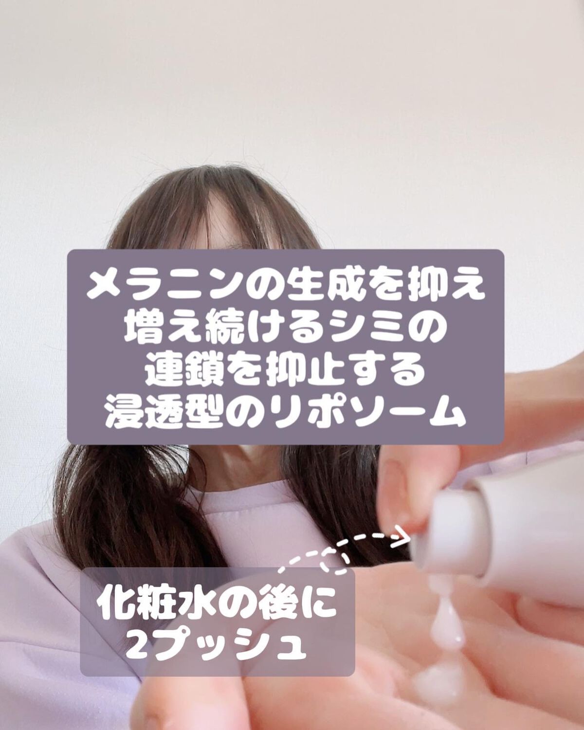 「刺激ダメージ*1 」を防ぎ、シミを元からつくらせない*2 。薬用シミ予防美容液です。 抗炎症・美白有効成分「トラネキサム酸」と、抗炎症有効成分「グリチルレチン酸ステアリル」配合。 また、アスタリフト独自のリポソーム技術が採用されていて美容成分をしっかり肌に届け*3 、肌悩みに集中してアプローチ🙆♀️💮 ボトルデザインはダメージを受けた肌を優しく包み込むような繭をイメージしたフォルム🤍 とろみのあるテクスチャーですがスーッと伸び広がり、肌馴染みが良い🙌 みずみずしいひんやり感が心地良く、ベタつかないので朝のメイク前にもおすすめです💞