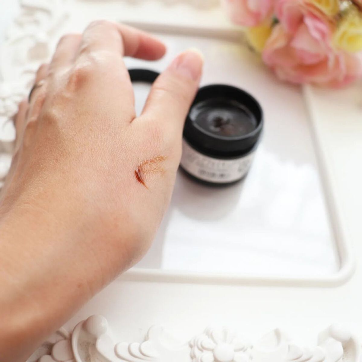 肌にのばすとスーッと溶けてメイク落ちも良く、香りもあまり気にならないのでとても使いやすかったです☺️. ただ、蓋を閉めて置いているのに中身にどんどん水分が増してくるのはなぜなのか😇. それだけ気になりましたが、突っ張らずメイクがすっきり落ちるのはとても良かったので、人気があるのも納得です🥰.