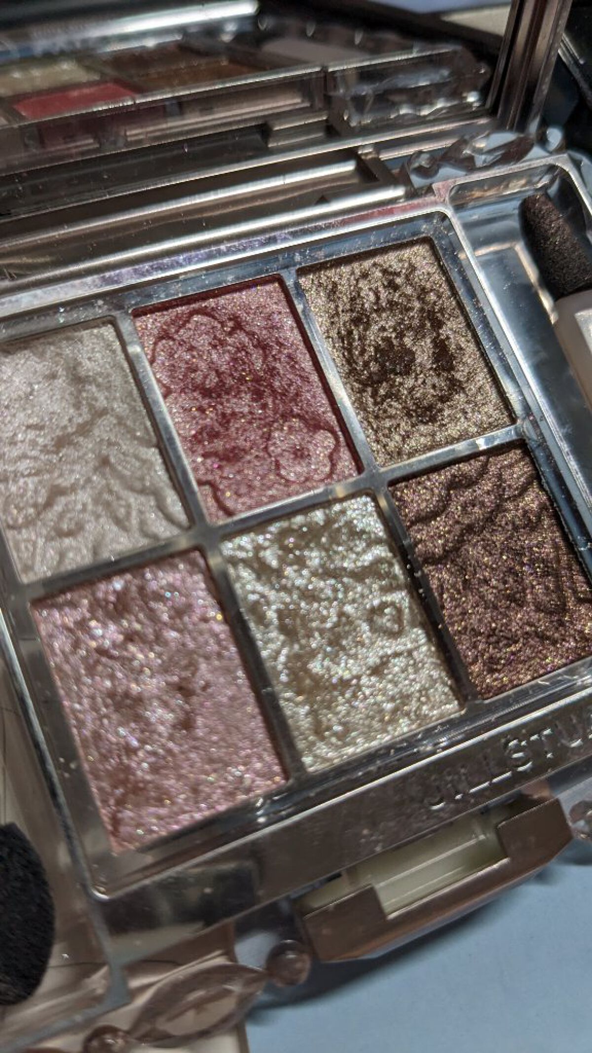 今日のメインはJILLSTUARTのいつぞやのクリスマスコフレ(上段の右から2つ)に、これまたADDICTIONの限定品シノワズリの上段左の大粒の青ラメ。 ピンクグレージュを基調としたメイクはクールウィンターの私には大人しくなりがちなので、重ねる大粒ラメでアクセントをつけ、メイクのどこか(今日であればまつ毛)に黒を使って引き締めることが多いです。 今日はリップもピンクと青ラメの可愛らしいJILLSTUARTのものを使って、ほんのり甘い印象のメイクでした。