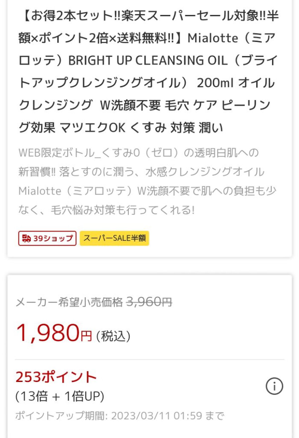 | スキンケアランキング第98位 | 柑橘系の香りがとても好き🫶🏻✨よりオイルの肌あたりも良くなって使い心地が良かった | 詳細を見る |