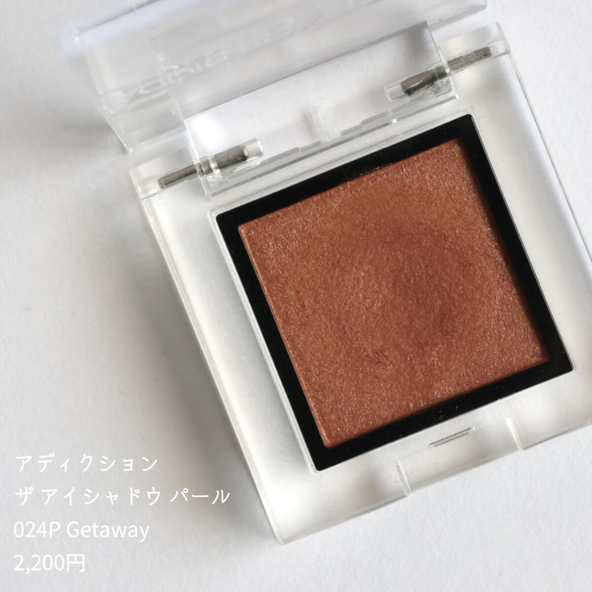 ▶ADDICTION□024P Getaway ¥2,200-赤みのあるオレンジテラコッタにパールがキラキラしていてとってもオシャレでトレンド感溢れるカラー✨️華やかだけど派手すぎないちょうど良さを感じるよ。日常のメイクからちょっとドレスアッ...