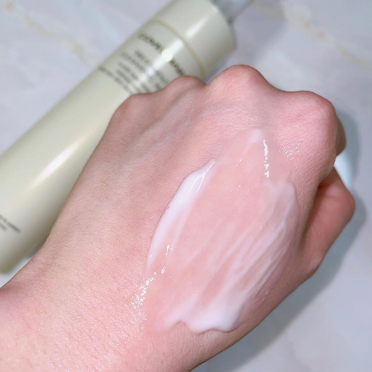 これ1品で、マスク後みたいな白肌へ。朝用塗るマスク。塗るだけで「素肌ケア」+「トーンアップ」が完了。 5つの機能(化粧水・乳液・保湿マスク・トーンアップ・化粧下地)が1本になった多機能美肌チャージミルクだからそのままファンデへ。 ふわふわしてる。ムースみたい。瑞々しさはあるけどそれが仇となってなかなか馴染まない ・爽やかな香り。好き嫌い分かれるけど私は耐えた ・パケ可愛い ・毛穴はなんとなく目立たなくなる ・洗顔後ぶっちゃけこれ一本では無理です。乾燥するからスキンケアしてからの使用を推奨、さらに日焼け止め効果ないので焼けます。 ・香りは朝の眠気飛ばすには良いのかもしれないけど最近のマスク生活では香りが篭ってウッ、、🤢 ・エタノール・メントール入ってるから特に敏感肌注意⚠️ ・瑞々しさが仇となってなかなか馴染まない。肌が弾いてる。 ・トーンアップはよくわからない