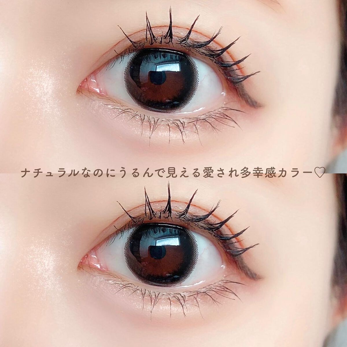 キャンマジ新色出たよ💕 馴染む立体感がヨジャドルっぽくて新色の中で1番よく使ってるカラー。 どんなメイクとも相性がいいので使いやすいです! 着色直径よりも体感大きめに感じるのも🙆🏻♀️ オレンジ感の少ないブラウンだから口紅やチーク次第で幼くも大人っぽくもなれる。 浮かない太めフチで可愛いさ溢れてます✨ レンズ単体だとめちゃくちゃピンクなのかなと思ったけど着けたら馴染みました💕 パキッとしないのでほわほわしたピンクが好きな人やラメメイクが好きな人にもおすすめ◎