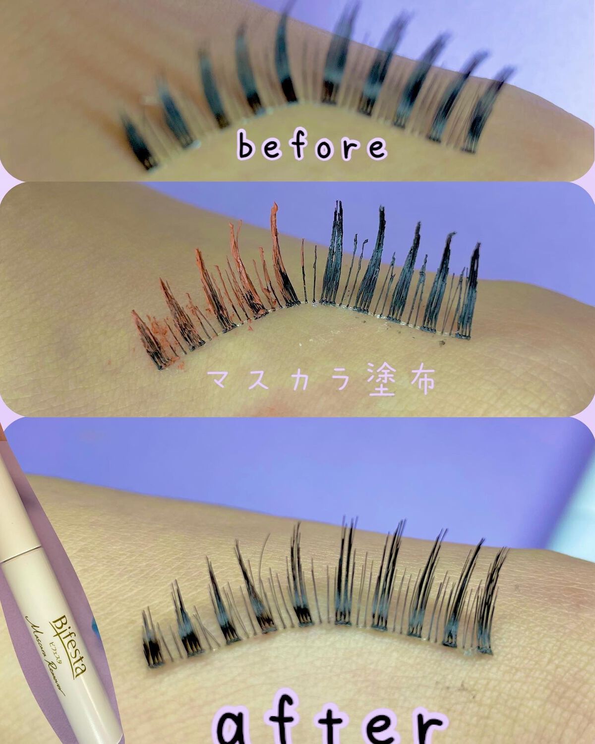 マスカラオタクが愛用。どんなマスカラも落ちやすいクレンジング✨ コーム型でまつ毛に液が絡みやすく使いやすいです。 ウォータープルーフのアイライナーや、グリッターなど落ちにくいアイメイクでもするんとオフできる。