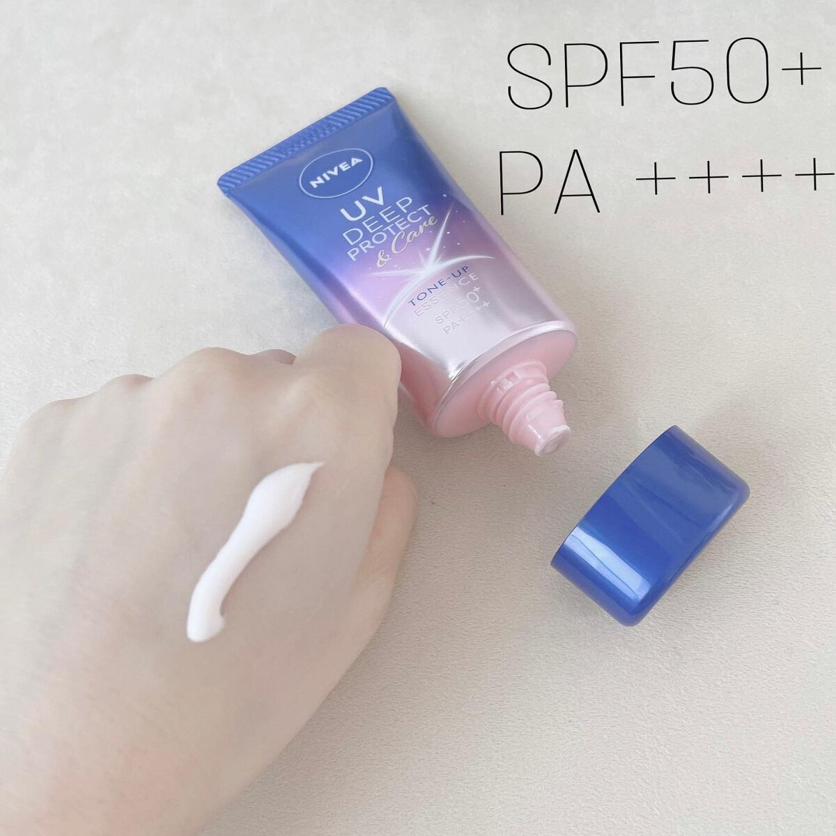 ニベアUVディーププロテクト&ケアトーンアップエッセンスニベア花王からいただきました✨SPF50+・PA++++日やけによるシミ予防*1UV。血色感をUPさせて自然に肌を明るくみせる*2トーンアップエッセンスです。主にシミの原因となるUV-B...