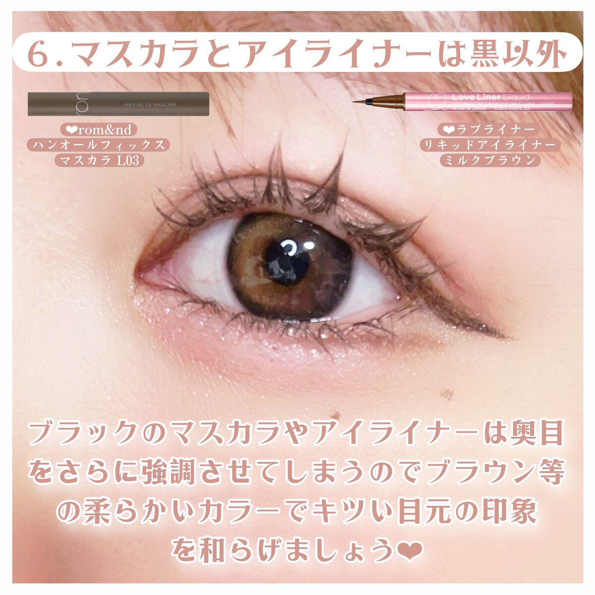 深みと艶を与える黒みブラウン。チョコレートのような色味で肌に馴染む濃いブラウンで可愛い〜𓈒𖧷 極細0.1mmの筆先で、かすれる事もなくなめらかな描き心地。コシがあるので目尻までスーッと綺麗に描けるんです♪ 崩れにくいのに落としやすいのでナチュラルメイク派さんにもオススメです𖤐˒˒