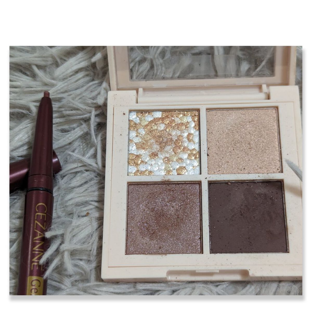 全体的に見た目より柔らかいシアー感のある発色 メインカラー+ラメ/メインカラー+締め色/上段左右→下段右/上段左→下段左右と好きなように使える配色なのも◎ 左上はかなりはっきりしたラメカラー 公式ではアイホール全体に入れるよう推奨してたけど、流石に派手過ぎたので今回は割愛しました しっとりテクスチャだけど細いブラシだとボソボソとまとまって取れるので、小指でささっと塗るのが粉飛びせず1番安心して使えるかも