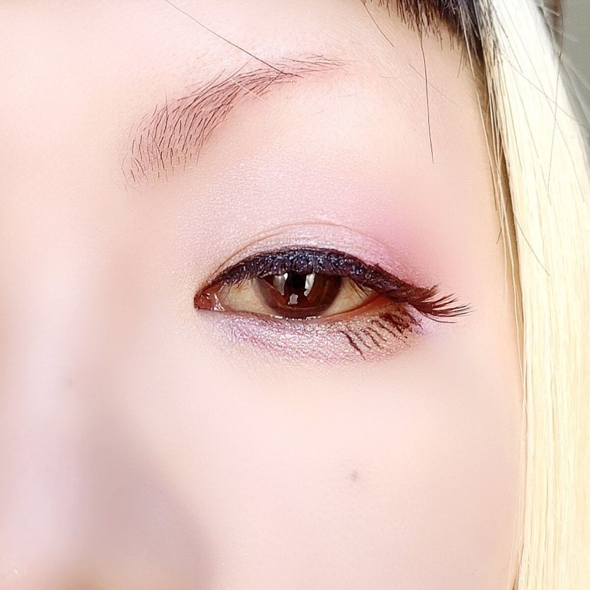 プチプラのクオリティじゃないっ!! 発売前からチェックしていたけれど、ここまで可愛いとは…😆 絶妙カラーで目もとのくすみを飛ばして*明るい印象に🩷 横割りグラデーションでメイクし、立体感をより出したかったので最後に1番左のカラーを上まぶたの真ん中と涙袋にのせています🙆 肌馴染みも良くて粉飛びも感じにくかったです💕 ブラウンの方も店頭に出てたら買おうかな💓