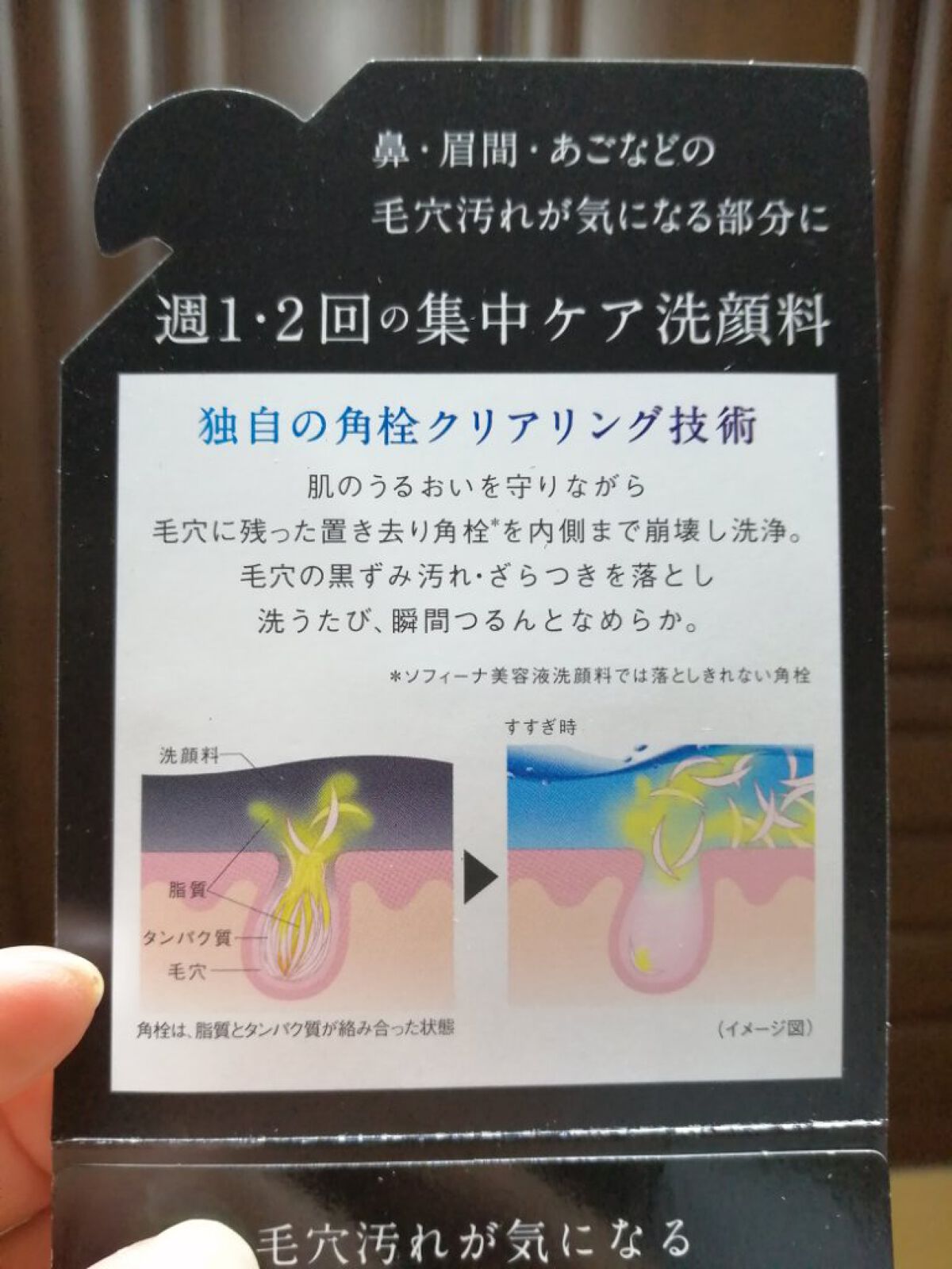 - なかなか落としきれない置き去り角栓*を内側まで崩壊し洗浄する、週1・2回の集中ケア洗顔料。 毛穴の黒ずみ汚れ・ざらつきを落とし、洗うたび、瞬間つるん。 ●肌のうるおいを守る、美容成分配合(保湿:キハダ樹皮エキス、マンニトール、トレハロース) ●キレイが弾ける、クリアオーシャンエナジーの香り ●鼻・頬・あごなどの毛穴汚れが気になる部分に週1・2回を目安に。 *ソフィーナ美容液洗顔料では落としきれない角栓