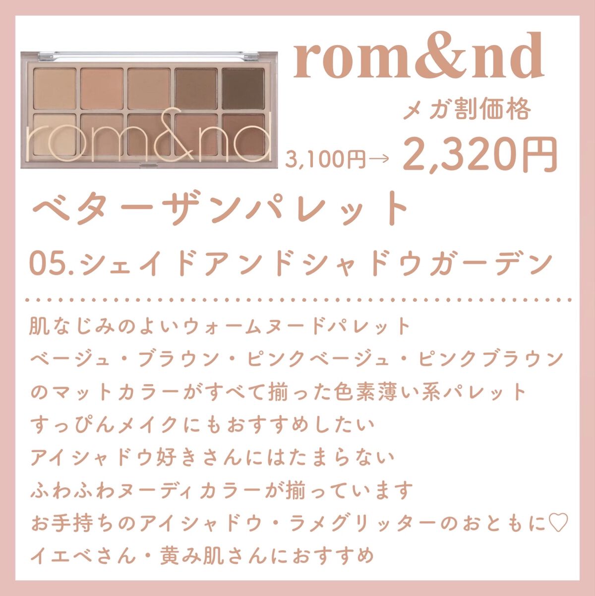 rom&nd ベターザンパレット | 3,190円 |