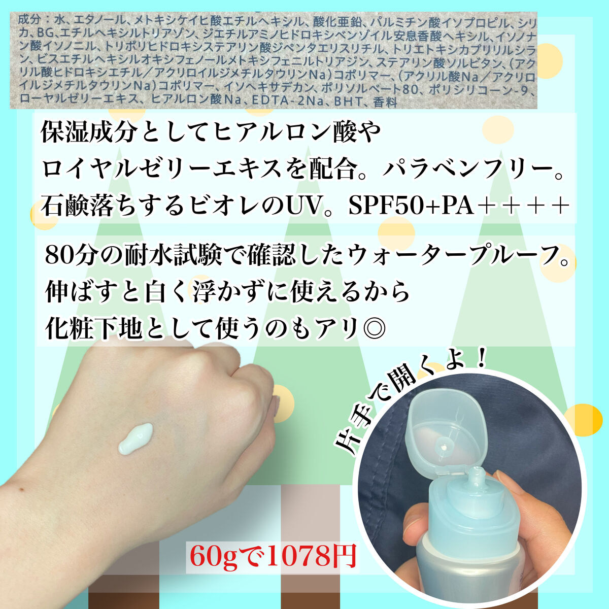 | 日焼け止め・UVケアランキング第13位 | お手頃価格で、惜しみなくたっぷり塗れます すーっとのびて、みずみずしい使い心地です | 詳細を見る | |