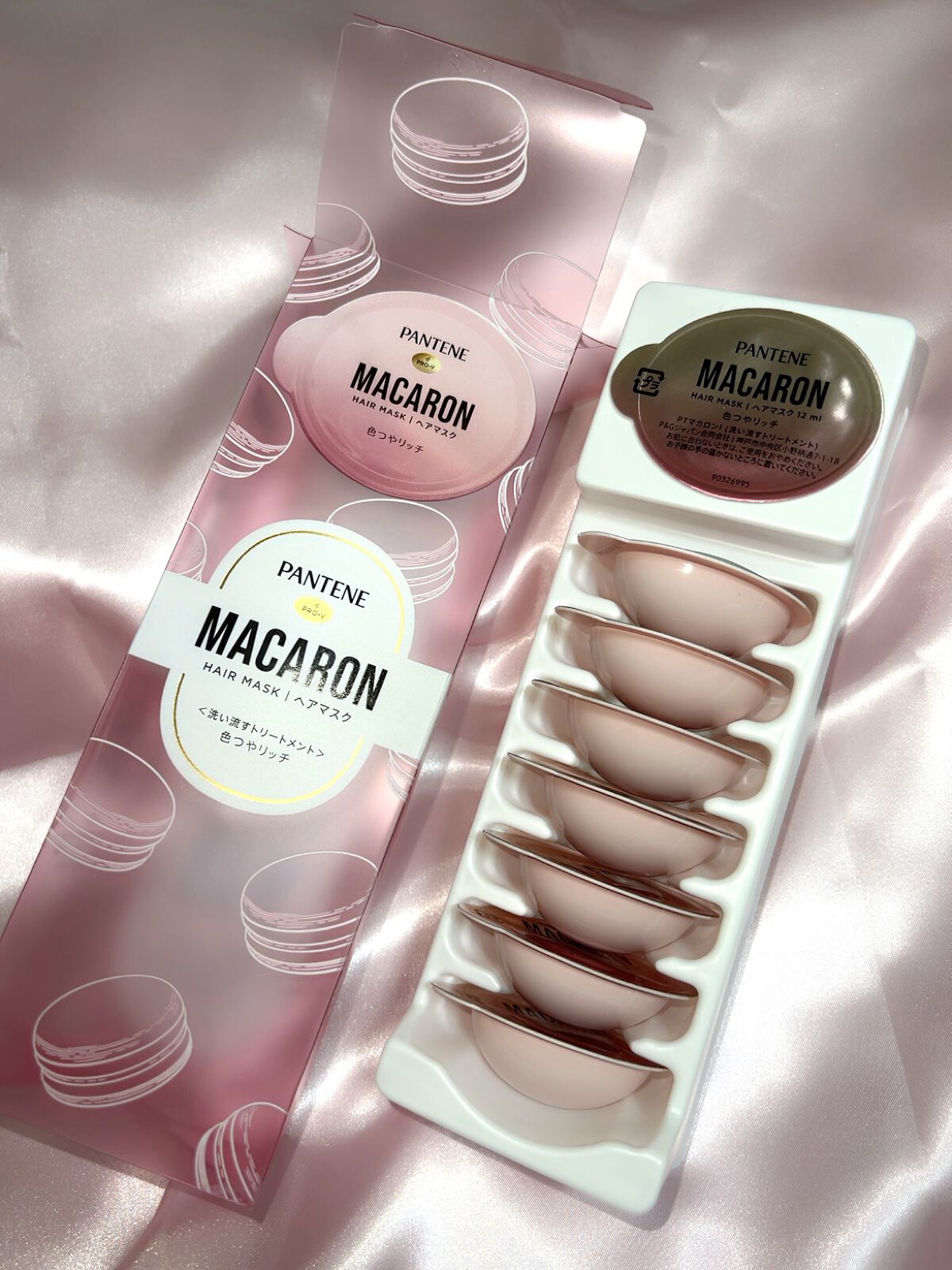 - 「パンテーン マカロン ヘアマスク」は、1粒に1回分の洗い流すトリートメントがたっぷり詰まった、使い切りタイプのヘアマスクです。 マカロンのようなカプセル型のユニークなパッケージの可愛さのみならず、個包装の使い切りタイプによる3つの特長で、たった1粒で、ずっと続く、うるおいつめく髪/色つや髪へ導きます。 1.1粒にたっぷりの洗い流すトリートメントをギュッと濃縮。すぐに感じる、もっとまとまる髪へ! 「パンテーン マカロン ヘアマスク」は、1粒にたっぷり12mLの洗い流すトリートメントが入っています。様々な髪の長さ、量の方でも髪の内側までしっかりと塗布することができ、効果を発揮します。 たっぷりの量を使用することで、髪のまとまり感がアップ。 2.いつでも開けたて、フレッシュな洗い流すトリートメント カプセル型のパッケージに入った個包装の1回使い切りなので、いつでも開けたてのフレッシュさ。 毎回、使う直前に手のひらで“メルティうるおいパール*”を混ぜ合わせて、1粒で、長時間続くうるおいつやめく髪へ。(うるつやリッチのみ) *黄色いカプセルのこと 3.個包装だから持ち運びOK。いつでもどこでも、うるつや髪・色つや髪に 日々のケアはもちろん、1粒ずつ持ち運ぶことが出来るので、ジムやサウナ、お泊り会、旅行・出張など、様々なシーンで使うことが出来ます。いつでも・どこでもうるつや髪/色つや髪に。