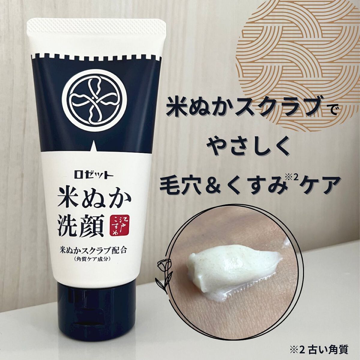 ***【ロゼット 江戸こすめ 米ぬか洗顔】.米ぬか※1の天然スクラブ効果で、くすみ※4や毛穴の汚れをやさしく取り除き、透明感のある肌へ導く、江戸こすめの米ぬか洗顔。コメヌカエキス※3やコメ胚芽油※5などの米由来のうるおい成分が肌のキメを整え、...
