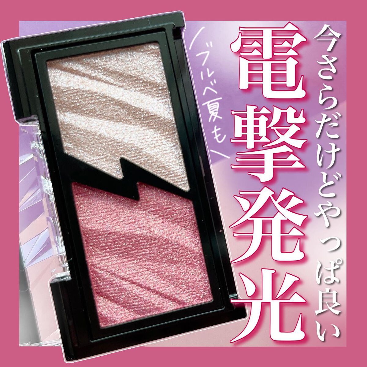 くすみのない青みピンクのメインカラーと上品なラメカラーの#プチプラアイシャドウです! カッコいいパッケージからは想像できないくらい可愛いカラーで曲線顔の#ブルベ さんにおすすめです✨ #顔タイプフェミニン #クリアウィンター #ブライトサマーの私も愛用しています💕