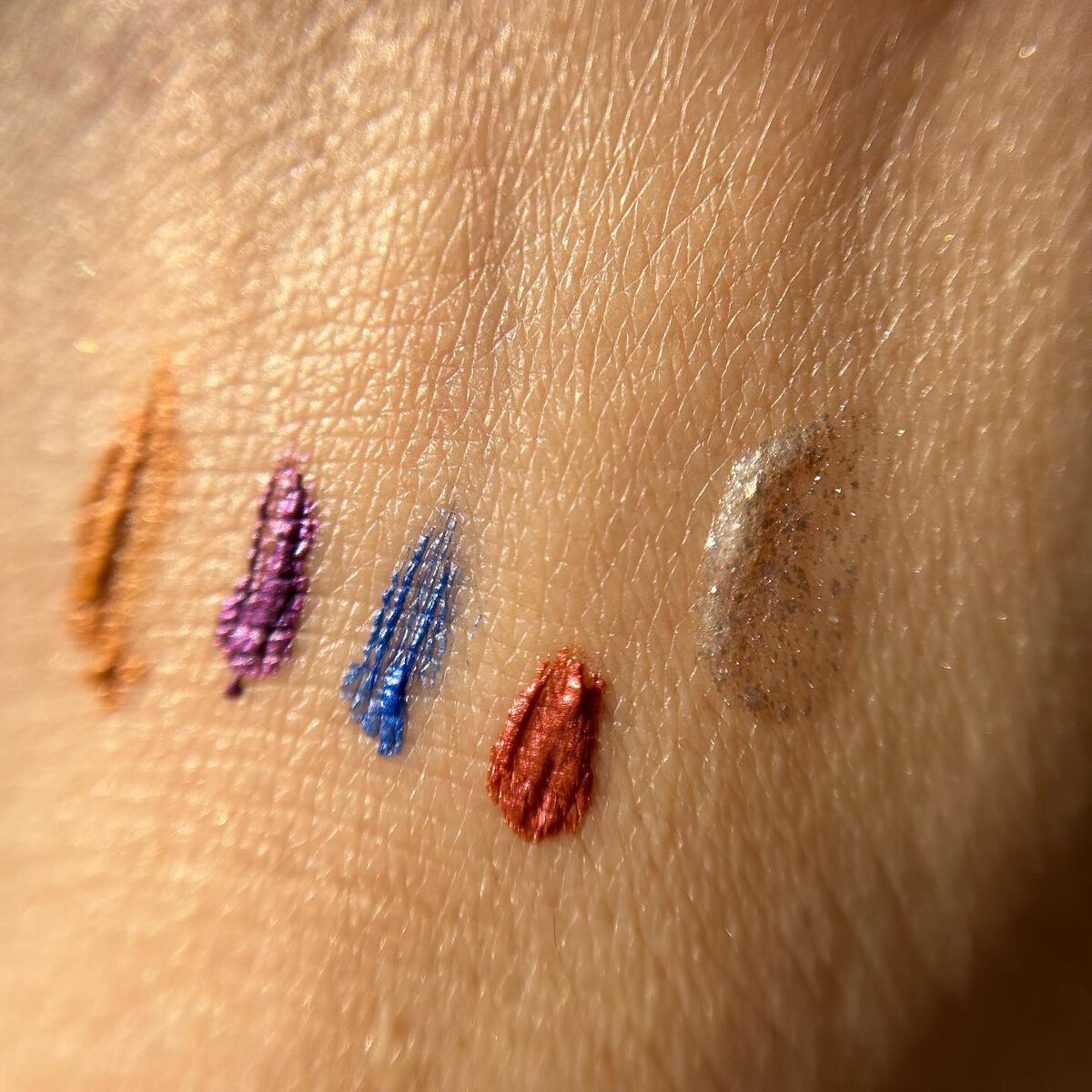 ビーアイドルの中で今までで1番好きかも❤️ 粉質は結構柔らかめ!スウォッチみたら淡い感じするけど目元に塗ると思ったよりしっかり発色🤗 ラメの粒は大きめかも🙋♀️ だからやっぱり頬にラメはちょっと落ちるよね😅 配色はどれ使ってもどの組み合わせでも可愛いんだよな〜😌❤️