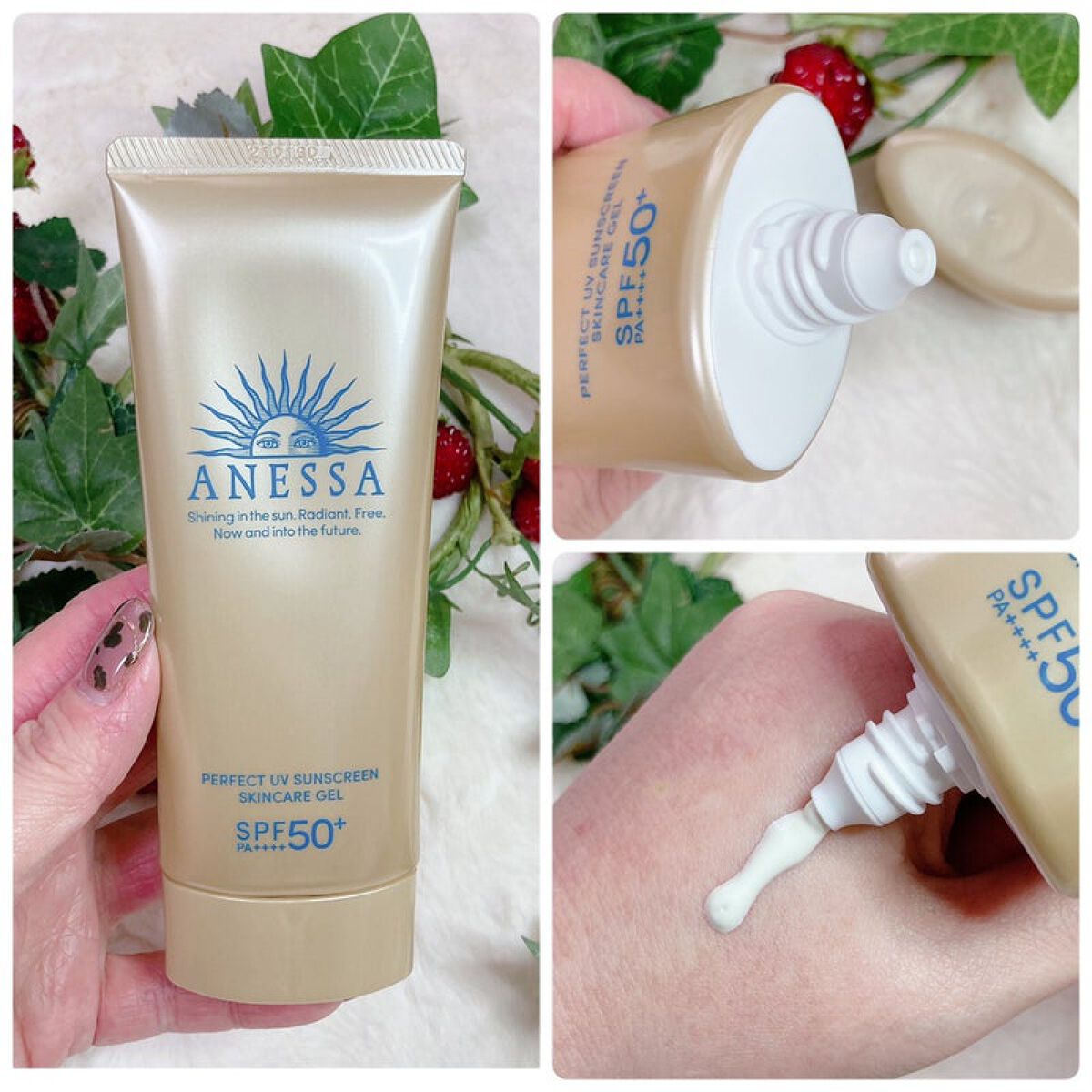 - SPF50+ ・ PA++++ 顔・ から だ用 汗、水、そして空気中の水分※10 に反応してUVブロック膜が強くなる技術搭載 毎日つけたくなる みずみずしいスキンケア UVジェル ※10 暑い時期の高湿度環境 〇汗、水、そして空気中の水分に自動的に反応して 、 UVブロック膜が 強くなります 。-オートブースタ ー 技術 〇透明美肌仕上げ-ビューティ ー アップ 〇スキンケア成分50%配合 〇保湿成分:コラーゲン、スーパーヒアルロン酸※9、グリセリン ※9 アセチルヒアルロン酸Na 〇長時間保湿持続効果 〇スーパーウォータープルーフ 〇マスク蒸れ対応 〇耐こすれ 〇化粧下地効果 〇せっけんで落とせる 〇みずみずしいジェル 〇生まれ変わった、心地よいフルーティーフローラルの香り 〇大気中に浮遊する微粒子、PM2.5などから肌を保護します。 -微粒子付着防止対応 〇海に流れ出にくいオーシャンフレンドリー処方※6 ※6 自社品内の耐水処方でない商品と比較 〇植物由来の原料を一部使用した袋 〇無着色・ノンコメドジェニックテスト・アレルギーテスト済み (全ての方にニキビができない、アレルギーが起きないというわけではありません)