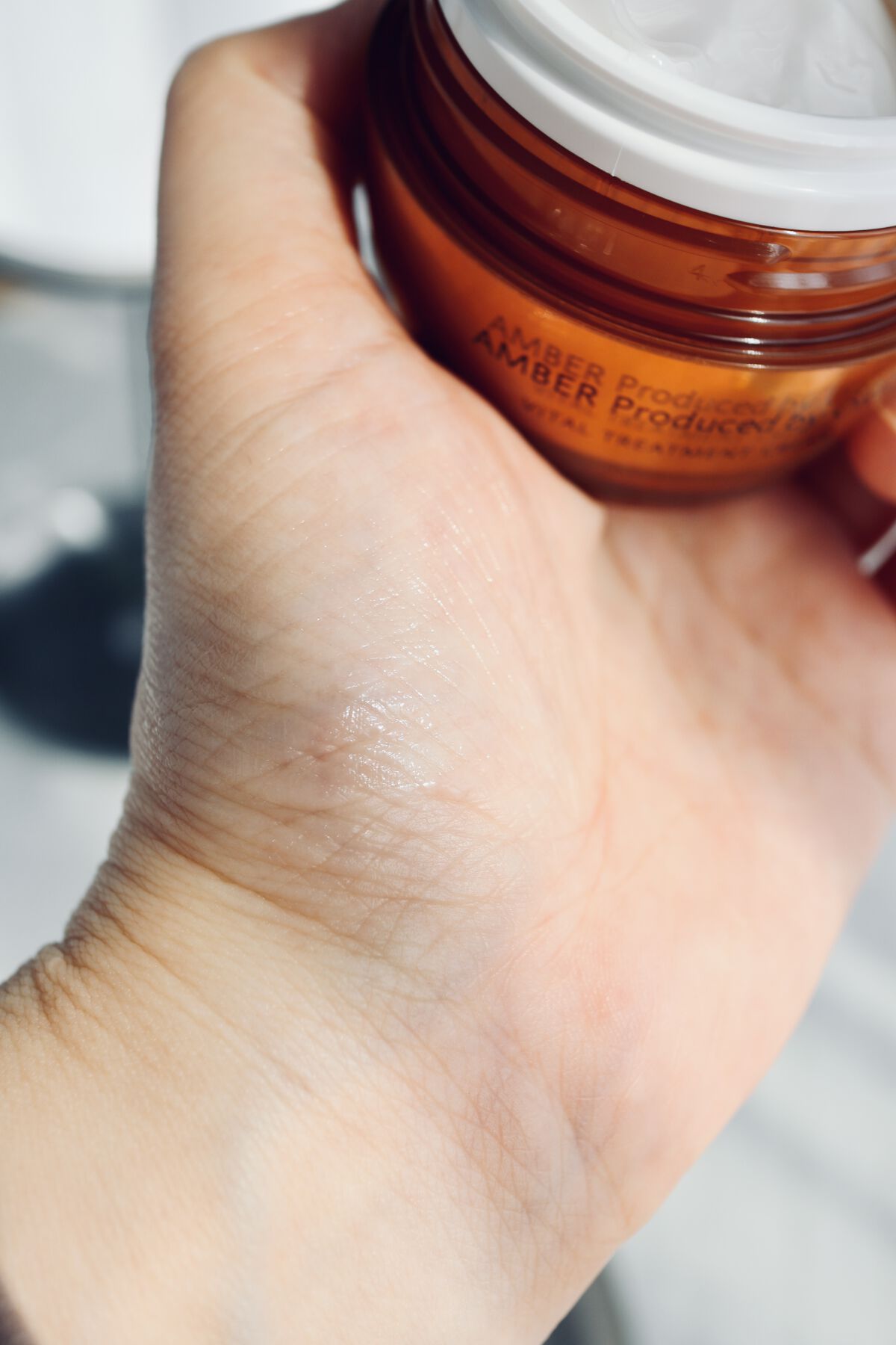贅沢に美容成分を配合しているクリームは思ったより軽く、みずみずしく、素肌によくのびます。べとつきはしないかな。 プッシュしてエアレスボトルから新鮮なクリームが出てくるから量も調節しやすい🙆♀️ クリームはジェルのようにみずみずしいよ。少し高級化粧品によくあるような独特の香りがします。 ピンク色のエアーレスのボトル プッシュするとクリームが出てきます。