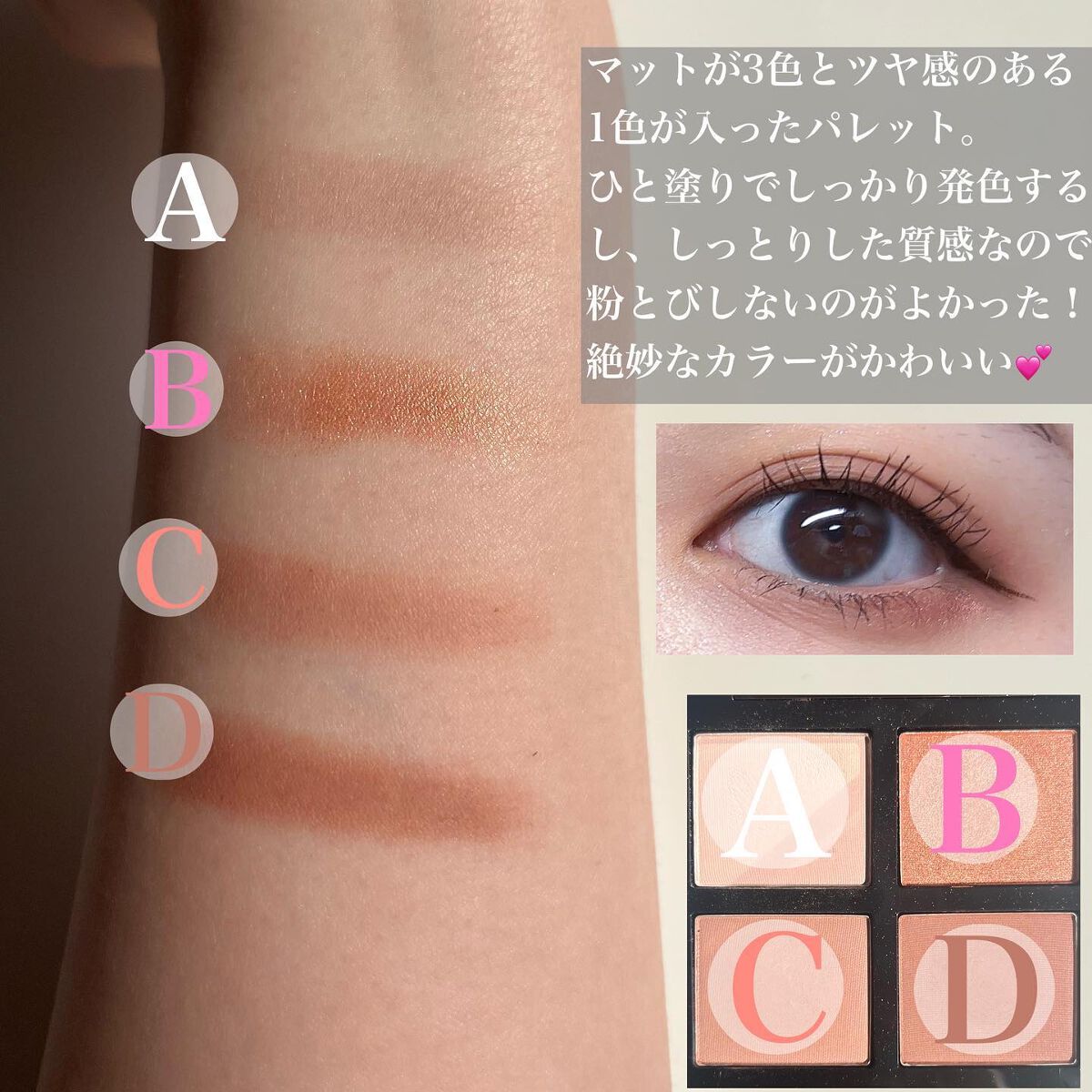 これの良いところは、なんといっても艶感が最高!パールやラメ自体が細かいので、大人っぽい仕上がりです。 またこのアイシャドウパレットの良いところは、粉質がとにかくしっとりしていて密着力が高いし、しっかり発色します! お値段以上に仕上がりが最高なのでぜひ使ってみてほしいです!