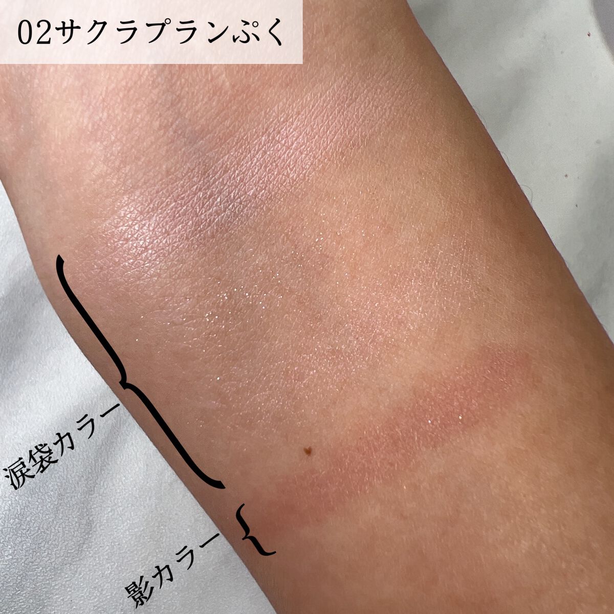 - マット・パール・ラメ入りで3パターンの涙袋が作れる 涙袋用アイシャドウパレット 涙袋用に3色、涙袋の影用に1色がセットされた涙袋用のアイシャドウパレットです。 その日の気分やTPOに合わせて選んでみてくださいね! マットは透け感があり目元のシワが気になりにくく、 パールは繊細で透明感のあるツヤっとした仕上がりに、 ラメはキラキラと輝く透け発色です。 涙袋の影用の「血色影カラー」は、影寄りの色なのに血色感もあって目元が暗くならない パウダーだからこそできた絶妙な色味なんです!