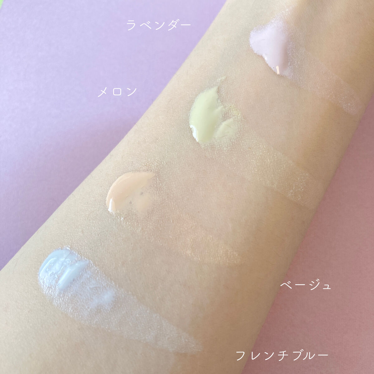 グリーン(メロン)は赤みをカバーしてくれるらしいので、チャレンジしてみたら、あ、こっちだったかも。 しっかり赤みを隠してくれて、程よくトーンアップ*もしてくれた♡ お気に入り下地の仲間入り🥰