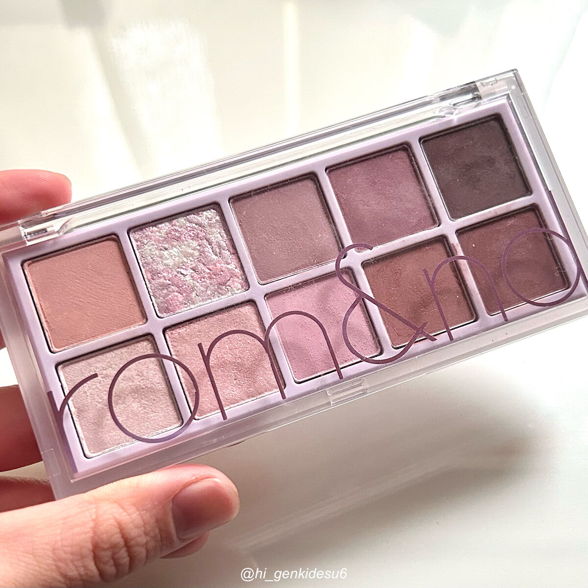 全体的にマットな質感ですが グレージュの色だけ ホワイトパールが入っています。 色味は赤みも黄みも少なく とても使いやすいです。 ロムアンドのアイシャドウは 発色も良く粉質も使いやすいです。