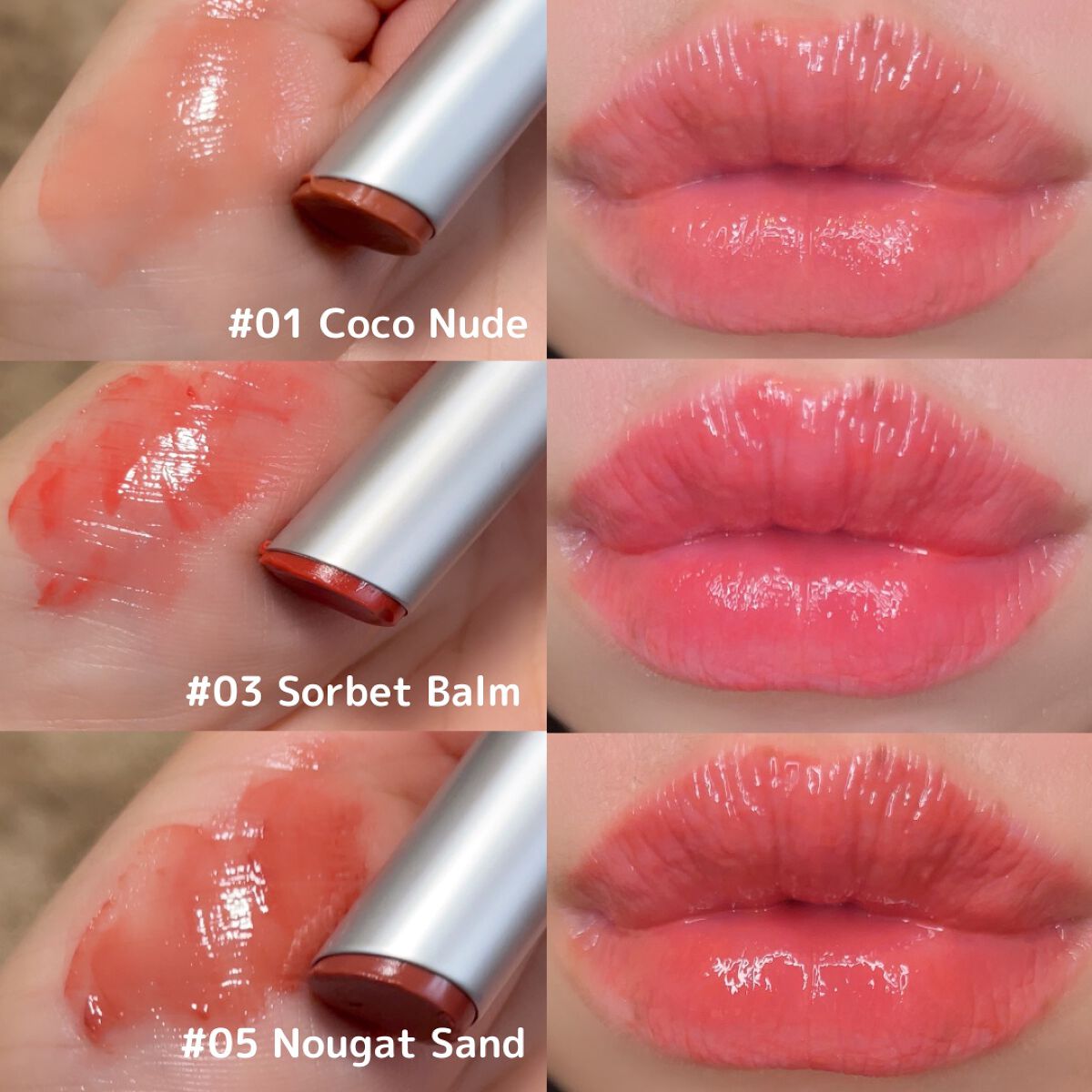 - <01 ココヌード(Coco Nude)> リンゴ酸ジイソステアリル、ダイマージリノール酸ダイマージリノレイルビス(ベヘニル/イソステアリル/フィトステリル)、トリイソステアリン酸ポリグリセリル-2、ビスジグリセリルポリアシルアジペート-2、パラフィン、トリメリト酸トリトリデシル、テトライソステアリン酸ペンタエリスリチル、マイクロクリスタリンワックス、イソステアリン酸ソルビタン、1,2-ヘキサンジオール、ジステアルジモニウムヘクトライト、合成ワックス、酸化チタン、(エチレン/プロピレン)コポリマー、酸化鉄、炭酸プロピレン、香料、赤104(1)、リモネン、リナロール、ホホバ種子油、アーモンド油、アンズ核油、月見草油、オリーブ果実油、アルガニアスピノサ核油、シア脂、ツバキ種子油、トリ(カプリル/カプリン酸)グリセリル、マンゴー果実エキス、カニナバラ果実エキス <02 ラヴィーピンク(Lovey Pink)> リンゴ酸ジイソステアリル、ダイマージリノール酸ダイマージリノレイルビス(ベヘニル/イソステアリル/フィトステリル)、トリイソステアリン酸ポリグリセリル-2、ビスジグリセリルポリアシルアジペート-2、パラフィン、トリメリト酸トリトリデシル、テトライソステアリン酸ペンタエリスリチル、マイクロクリスタリンワックス、イソステアリン酸ソルビタン、1,2-ヘキサンジオール、ジステアルジモニウムヘクトライト、合成ワックス、酸化チタン、(エチレン/プロピレン)コポリマー、赤104(1)、黄5、炭酸プロピレン、赤202、香料、リモネン、リナロール、ホホバ種子油、アーモンド油、アンズ核油、月見草油、オリーブ果実油、アルガニアスピノサ核油、シア脂、ツバキ種子油、トリ(カプリル/カプリン酸)グリセリル、マンゴー果実エキス、カニナバラ果実エキス <03 ソルベバーム(Sorbet Balm)> リンゴ酸ジイソステアリル、ダイマージリノール酸ダイマージリノレイルビス(ベヘニル/イソステアリル/フィトステリル)、トリイソステアリン酸ポリグリセリル-2、ビスジグリセリルポリアシルアジペート-2、パラフィン、トリメリト酸トリトリデシル、テトライソステアリン酸ペンタエリスリチル、マイクロクリスタリンワックス、イソステアリン酸ソルビタン、1,2-ヘキサンジオール、ジステアルジモニウムヘクトライト、合成ワックス、酸化チタン、赤104(1)、(エチレン/プロピレン)コポリマー、酸化鉄、黄5、炭酸プロピレン、香料、リモネン、リナロール、アルガニアスピノサ核油、シア脂、ツバキ種子油、トリ(カプリル/カプリン酸)グリセリル、アーモンド油、アンズ核油、月見草油、オリーブ果実油、ホホバ種子油、マンゴー果実エキス、カニナバラ果実エキス <04 ヒッピーベリー(Hippie Berry)> リンゴ酸ジイソステアリル、ダイマージリノール酸ダイマージリノレイルビス(ベヘニル/イソステアリル/フィトステリル)、トリイソステアリン酸ポリグリセリル-2、ビスジグリセリルポリアシルアジペート-2、パラフィン、トリメリト酸トリトリデシル、テトライソステアリン酸ペンタエリスリチル、マイクロクリスタリンワックス、イソステアリン酸ソルビタン、1,2-ヘキサンジオール、ジステアルジモニウムヘクトライト、合成ワックス、赤104(1)、黄5、(エチレン/プロピレン)コポリマー、赤202、炭酸プロピレン、酸化鉄、酸化チタン、香料、リモネン、リナロール、ホホバ種子油、アーモンド油、アンズ核油、月見草油、オリーブ果実油、アルガニアスピノサ核油、シア脂、ツバキ種子油、トリ(カプリル/カプリン酸)グリセリル、カニナバラ果実エキス、マンゴー果実エキス <05 ヌガーサンド(Nougat Sand)> リンゴ酸ジイソステアリル、ダイマージリノール酸ダイマージリノレイルビス(ベヘニル/イソステアリル/フィトステリル)、トリイソステアリン酸ポリグリセリル-2、ビスジグリセリルポリアシルアジペート-2、パラフィン、トリメリト酸トリトリデシル、テトライソステアリン酸ペンタエリスリチル、マイクロクリスタリンワックス、イソステアリン酸ソルビタン、酸化チタン、1,2-ヘキサンジオール、ジステアルジモニウムヘクトライト、合成ワックス、黄4、(エチレン/プロピレン)コポリマー、酸化鉄、炭酸プロピレン、赤202、香料、リモネン、青1、リナロール、シア脂、ツバキ種子油、トリ(カプリル/カプリン酸)グリセリル、アルガニアスピノサ核油、ホホバ種子油、アーモンド油、アンズ核油、月見草油、オリーブ果実油、マンゴー果実エキス、カニナバラ果実エキス <06 カヤフィグ(Kaya Fig)> リンゴ酸ジイソステアリル、ダイマージリノール酸ダイマージリノレイルビス(ベヘニル/イソステアリル/フィトステリル)、トリイソステアリン酸ポリグリセリル-2、ビスジグリセリルポリアシルアジペート-2、パラフィン、トリメリト酸トリトリデシル、テトライソステアリン酸ペンタエリスリチル、マイクロクリスタリンワックス、イソステアリン酸ソルビタン、1,2-ヘキサンジオール、酸化チタン、ジステアルジモニウムヘク