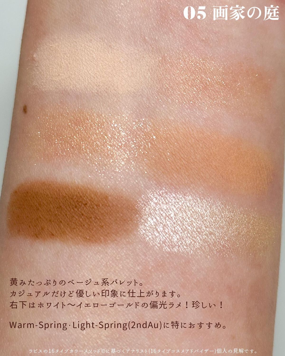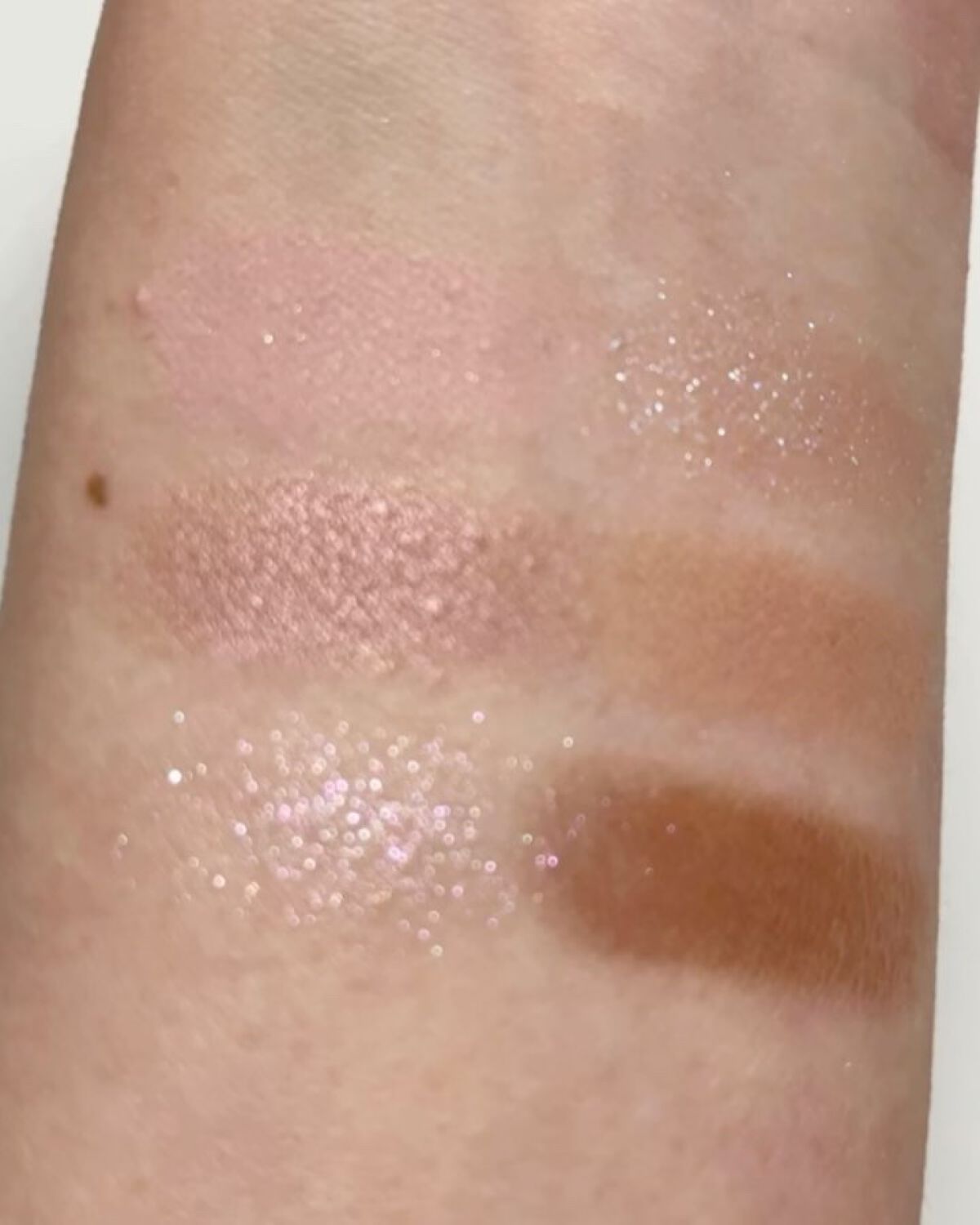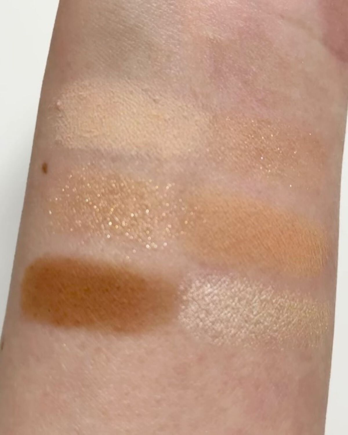 セルヴォークの代名詞とも言える“テラコッタ”を落とし込んだパレット。ソフトマットな質感がメインなのでカジュアルな仕上がりに♡ SUQQUにしては珍しく?トリッキーな色がない。右上が鬼門かと思いきや、ピンクパールのお陰か青ざめないしくすまない👏🏻ピンク系多色ラメも、赤み締め色も大好物🥰 これは絶対に使いやすい。危うさゼロ🥹想像の半分ぐらいの発色なので、初心者さんに一番勧めたいのがこれ!!これも赤みの締め色。というかもはや赤! 上2色、似てるけど使い分けれる?が課題でしたが、意外に右上は薄かったのでセーフ!イエローラメはアディクションの左上に似ています。これには唯一赤みがあるので、棲み分けはできそう。一番濃い目のメイクになりがち。