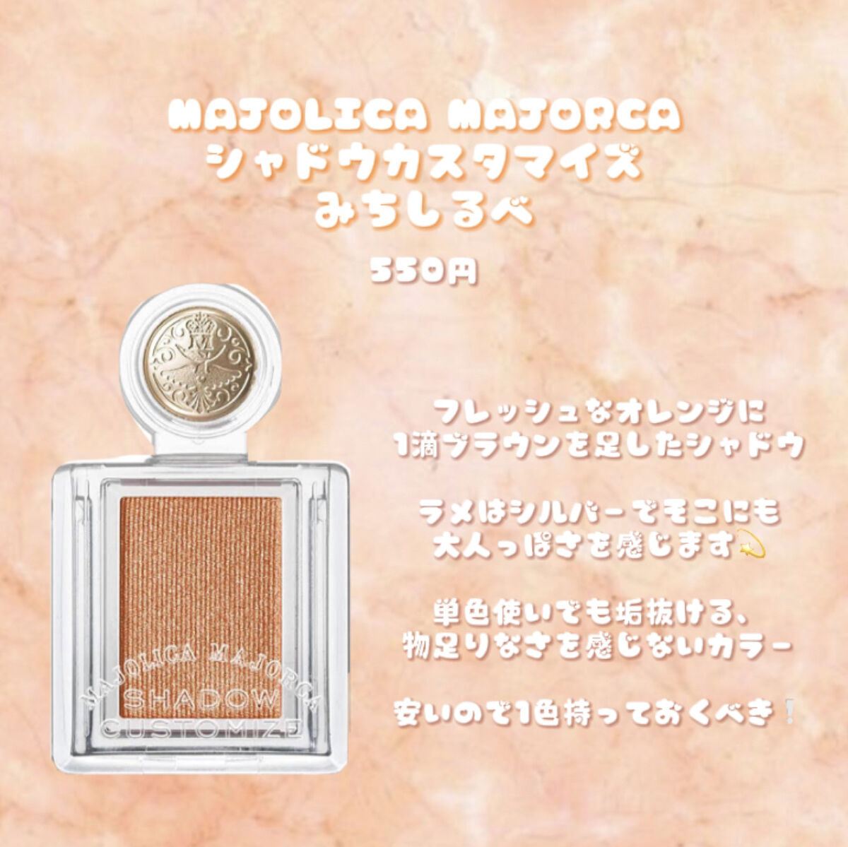 今回は、秋にぴったりのアイシャドウ『MAJOLICAMAJORCAシャドーカスタマイズOR300みちしるべ』をご紹介しました✨🍂⚫︎オレンジよりのブラウンにラメ🧡🤎✨で⚫︎簡単に秋っぽさはもちろん!上品さ、こなれ感が出せちゃいます!⚫︎メイク...