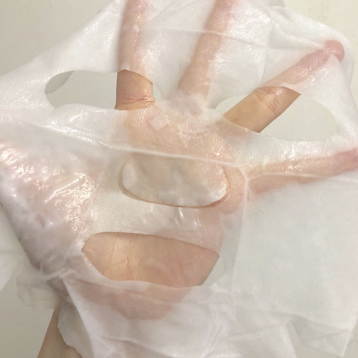 ヴァセリンが入ってるからめちゃこっくりした美容液♡めちゃ効きそう♡ 目鼻口の部分も小さいとかもなくシートマスクも大きめなのでしっかり付けることができることができました♡ シートマスク外したあとも顔がピカピカ🥰凄いです♡韓国旅行へ行った際は購入してみてください😳