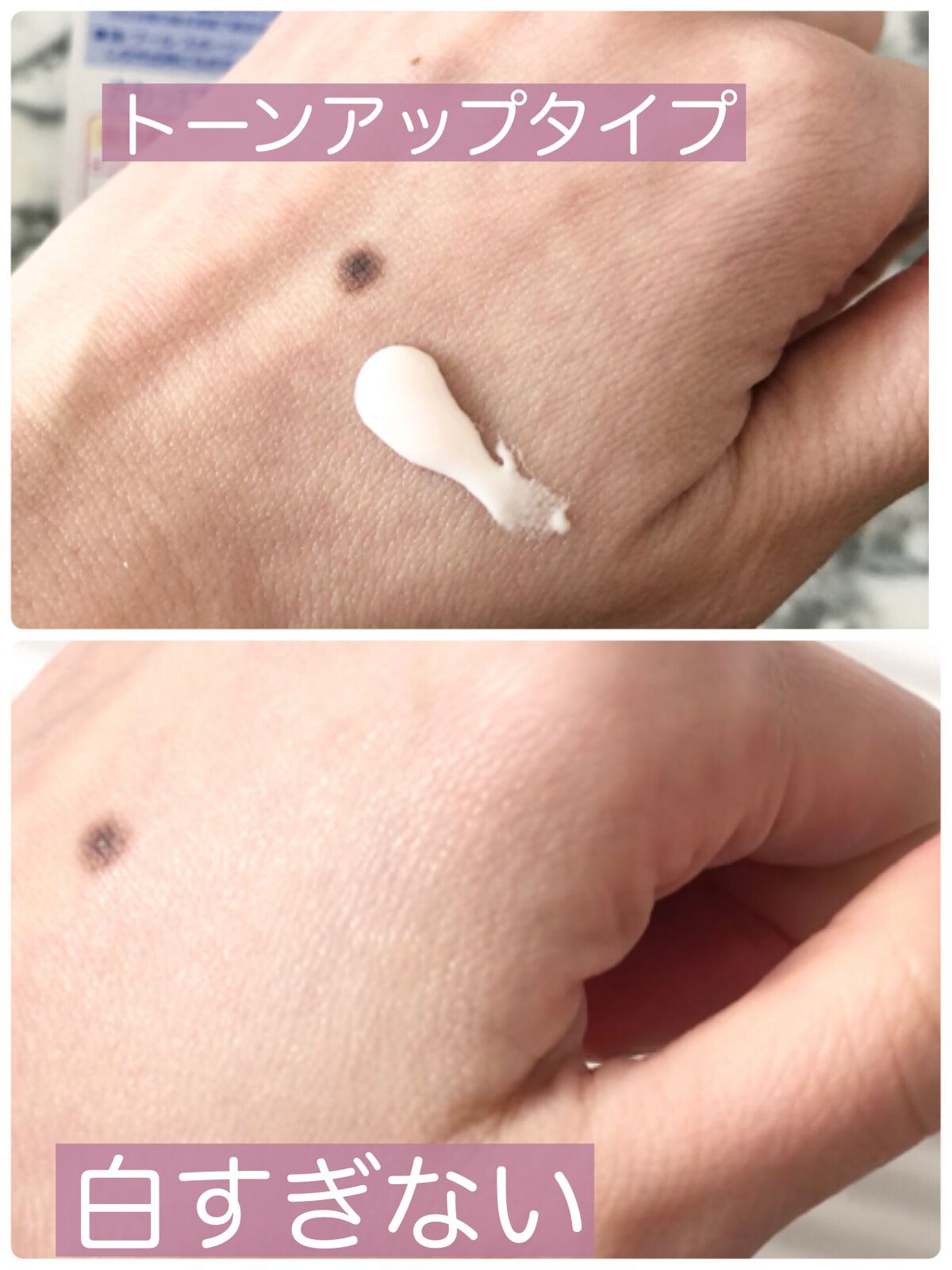 白浮きしないので、色ムラにならずに塗れます。 みずみずしいクリームみたいです。 爽やかな香りがします。 化粧下地にもなります。 朝塗って夜落とすまでつけていたことを忘れていました。 ウォータープルーフなので落とす時はしっかり落とした方がいいと思います。