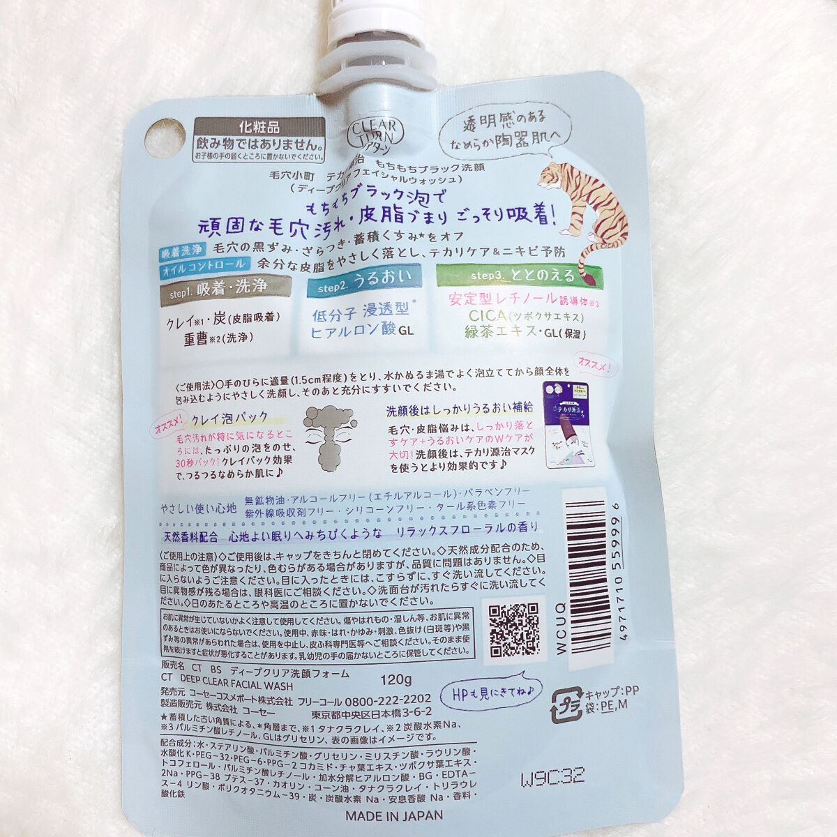 テカリ&毛穴目立ち&肌荒れにアプローチできるパックです☺️ 美容液もたっぷり153ml入っていて、パックも少し厚みのある凸凹のシートなんですけど、特に液だれしたり剥がれたりはしないです( 。•ω•。 ) 毛穴の黒ずみやざらつき・くすみをオフし、テカリケア&ニキビ予防ができるとのこと。洗顔ネットで泡立てると、弾力のあるもこもこ泡(逆さにしても落ちない)ができます( ^o^ ) 公式的にも、洗顔とパックのライン使いがオススメみたいです(^ω^) 特に可もなく不可もなくな感じですが、値段的にも使用感的にもなんかリピしちゃうな〜な商品でした🤣