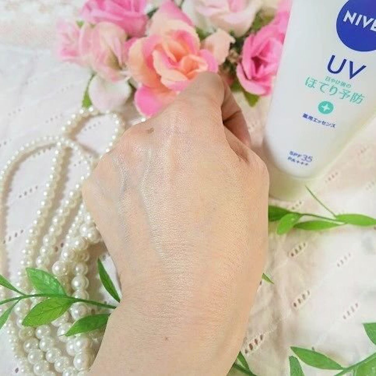 - 【医薬部外品】 ひんやり感のあるエッセンスが、肌を包み込み、美容パックのようにうるおいが持続します。 ●日常紫外線から素肌をやさしくまもる SPF35/PA+++ 主に短時間で肌の赤みを引き起こす UV-B も、ハリ・弾力低下の原因となる UV-A も防ぎます。 ●日やけ後のほてりを防ぐ 植物由来の消炎剤(有効成分):グリチルリチン酸ジカリウム配合 ●肌にうるおいを与えて乾燥を防ぐ アロエ保水成分*1(保湿)配合 ●素肌気持ちよい ひんやり感覚の使い心地 ●ボディケア品のようにうるおうのにベタつきにくい、肌に負担感の少ないつけ心地 ○顔・からだ用。 ○化粧下地としても使えます。 ○保湿ケア(スキンケア)としても使えます。 ○せっけんで落とせます。(本品はウォータープルーフタイプではありません) ○鉱物油フリー・合成着色剤フリー 〇気分やすらぐフローラルハーブの香り ○アレルギーテスト済み(すべての方にアレルギーが起こらないというわけではありません) *1 アロエエキス‐2、異性化糖、PG