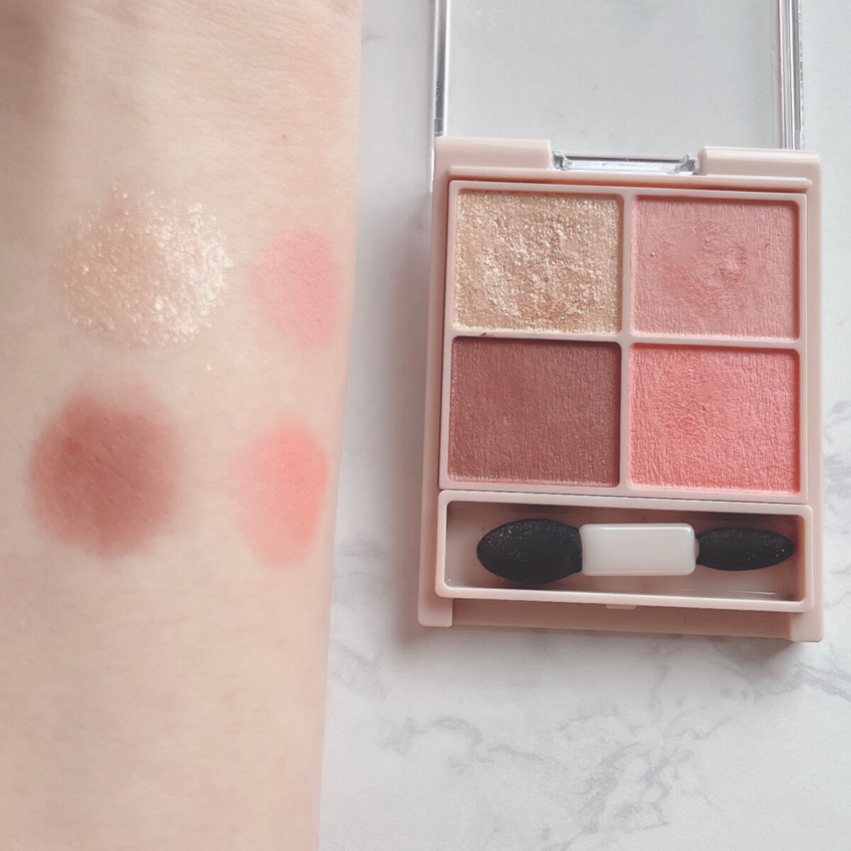 ぷくっとした立体感のあるハート型がまず可愛い。 ナチュラルな血色感大好きな私はドンピシャでした、、使いやすくて失敗しないチーク。 ひと目見て絶対買わなきゃと思った色。 こんなの可愛すぎる、透明感のあるモーブカラーは最高でした。 主張しすぎない華やかラメがお気に入りのアイシャドウ。 とくに左上の淡いピンクが好きすぎて今は底が見えそうです。お値段以上でラメ飛びもしないので大好き。