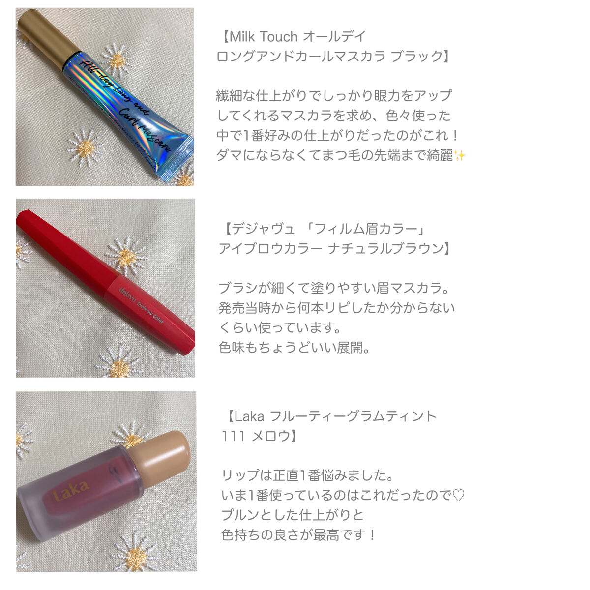 Milk Touch オールデイ ロング アンド カール マスカラ | 1,628円 |