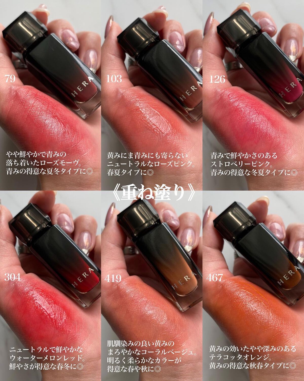 全14色+コントロールベースを パーソナルカラー分類レポしました◎ 本当にこんなにバズって発売から一年経つのに店頭から全色消えるリップなんてなかなか見ない😭💦 落ちないリップ界の中では残り方も綺麗でティントじゃないから色転びや色素沈着の心配なし◎ 新色の誓いのルビーがドツボだった🥰