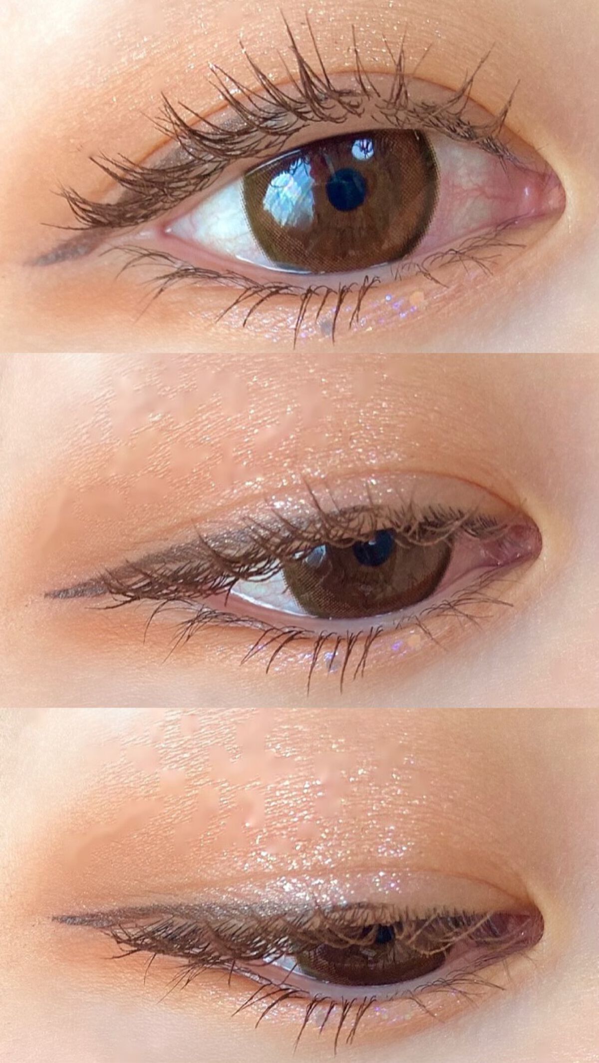 アンドバイロムアンドグラッシーアイグリッター PK01チェリーブロッサム、OR01オレンジブロッサム PK01チェリーブロッサムはピンクや紫、青ラメがたくさん入ったグリッター✨ 桜のようなピンクカラーで目元に甘さをプラスしてくれます🤍 OR01オレンジブロッサムはゴールドやピンク、キラッキラのホログラムが入っているグリッター✨ ゴールドラメが中心にたくさん入っているので、肌馴染みも◎ どちらもパリッとした仕上がりになりにくくて、とっても綺麗な仕上がりに感動しました🥺! 最初はPK01チェリーブロッサムだけ購入したんですが、使ってみるとあまりにも可愛くてすぐにOR01オレンジブロッサムも追加で購入したくらいお気に入りのグリッターです🩷笑 LAWSONで購入することができるとっても可愛いプチプラグリッター、是非ゲットしてみてください🎀