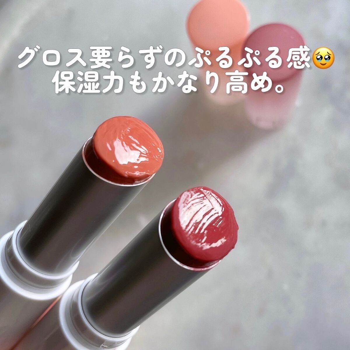これ、最初塗った時は普通のティントとあんま違い分かんないな…って思いました が、数分経ってから見たらびっくり。 とにかくツヤがすっっごい綺麗。 唇に膜が張ったようにちゅるんっとします。 ツヤリップ好きの私大歓喜。 個人的には04のモーヴピンクが好き。 大人っぽくて1番唇を綺麗に見せてくれる色な気がします!