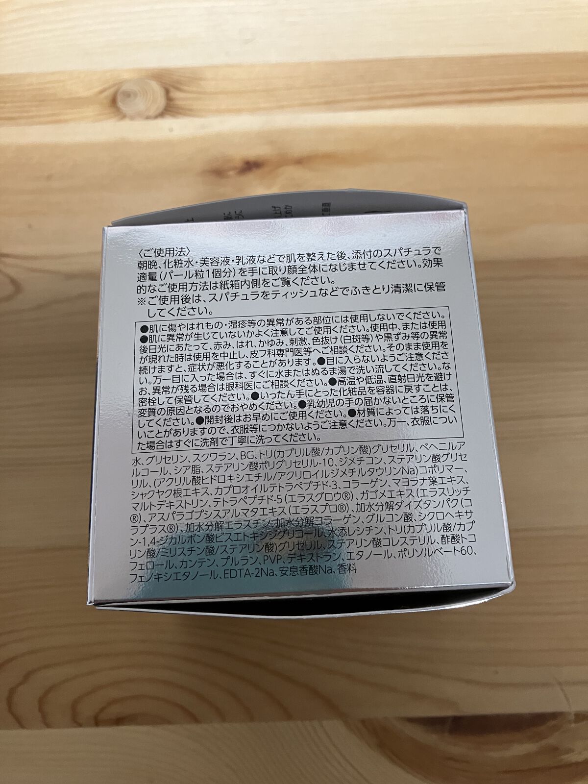 - <50g> 水、グリセリン、スクワラン、BG、トリ(カプリル酸/カプリン酸)グリセリル、ベヘニルアルコール、シア脂、ステアリン酸ポリグリセリル-10、ジメチコン、ステアリン酸グリセリル、(アクリル酸ヒドロキシエチル/アクリロイルジメチルタウリンNa)コポリマー、シャクヤク根エキス、カプロオイルテトラペプチド-3、コラーゲン、マヨラナ葉エキス、マルトデキストリン、テトラペプチド-5(エラスグロウ®)、ガゴメエキス(エラスリッチ®)、アスパラゴプシスアルマタエキス(エラスプロ®)、加水分解ダイズタンパク(コラプラス®)、加水分解エラスチン、加水分解コラーゲン、グルコン酸、シクロヘキサン-1,4-ジカルボン酸ビスエトキシジグリコール、水添レシチン、トリ(カプリル酸/カプリン酸/ミリスチン酸/ステアリン酸)グリセリル、ステアリン酸コレステリル、酢酸トコフェロール、カンテン、プルラン、PVP、デキストラン、エタノール、ポリソルベート60、フェノキシエタノール、EDTA-2Na、安息香酸Na、香料 <つけかえ用レフィル> 水、グリセリン、スクワラン、BG、トリ(カプリル酸/カプリン酸)グリセリル、ベヘニルアルコール、シア脂、ステアリン酸ポリグリセリル-10、ジメチコン、ステアリン酸グリセリル、(アクリル酸ヒドロキシエチル/アクリロイルジメチルタウリンNa)コポリマー、シャクヤク根エキス、カプロオイルテトラペプチド-3、コラーゲン、マヨラナ葉エキス、マルトデキストリン、テトラペプチド-5(エラスグロウ®)、ガゴメエキス(エラスリッチ®)、アスパラゴプシスアルマタエキス(エラスプロ®)、加水分解ダイズタンパク(コラプラス®)、加水分解エラスチン、加水分解コラーゲン、グルコン酸、シクロヘキサン-1,4-ジカルボン酸ビスエトキシジグリコール、水添レシチン、トリ(カプリル酸/カプリン酸/ミリスチン酸/ステアリン酸)グリセリル、ステアリン酸コレステリル、酢酸トコフェロール、カンテン、プルラン、PVP、デキストラン、エタノール、ポリソルベート60、フェノキシエタノール、EDTA-2Na、安息香酸Na、香料 <スペシャルセット(クリーム50g+美容液3mL)> 水、グリセリン、スクワラン、BG、トリ(カプリル酸/カプリン酸)グリセリル、ベヘニルアルコール、シア脂、ステアリン酸ポリグリセリル-10、ジメチコン、ステアリン酸グリセリル、(アクリル酸ヒドロキシエチル/アクリロイルジメチルタウリンNa)コポリマー、シャクヤク根エキス、カプロオイルテトラペプチド-3、コラーゲン、マヨラナ葉エキス、マルトデキストリン、テトラペプチド-5(エラスグロウ®)、ガゴメエキス(エラスリッチ®)、アスパラゴプシスアルマタエキス(エラスプロ®)、加水分解ダイズタンパク(コラプラス®)、加水分解エラスチン、加水分解コラーゲン、グルコン酸、シクロヘキサン-1,4-ジカルボン酸ビスエトキシジグリコール、水添レシチン、トリ(カプリル酸/カプリン酸/ミリスチン酸/ステアリン酸)グリセリル、ステアリン酸コレステリル、酢酸トコフェロール、カンテン、プルラン、PVP、デキストラン、エタノール、ポリソルベート60、フェノキシエタノール、EDTA-2Na、安息香酸Na、香料