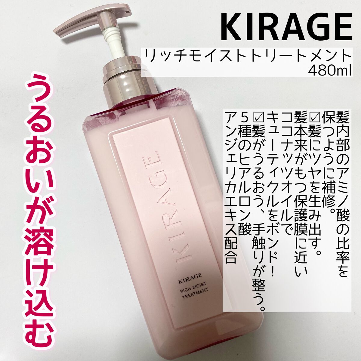 キラージュさまからいただきましたKIRAGE(キラージュ)リッチモイストシャンプー1,540円(稅込)480mLリッチモイストヘアトリートメント1,540円(稅込)480mLずっと気になってたの使ってみた!天使の生ツヤリング🪽KIRAGEのリ...