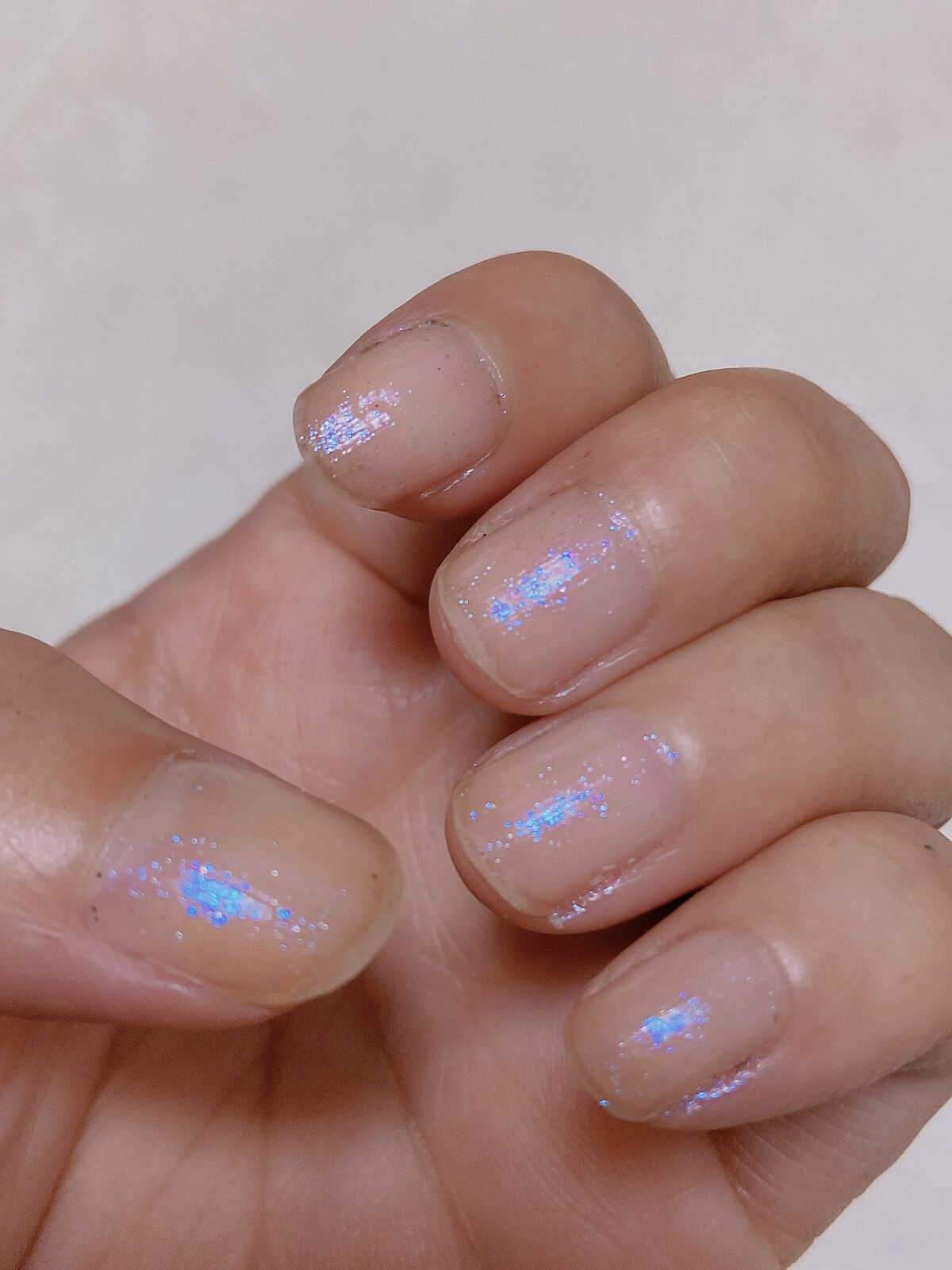 Dear.AさまからいただきましたDear.AシャインオンミーネイルカラーSE31SE32透け感のある発色一度塗りだと色むらになりやすいコツはたっぷりめに塗ること!クリアブルーシルバーラメトップコートがわりにも使えそうサラッとしたテクスチャー...