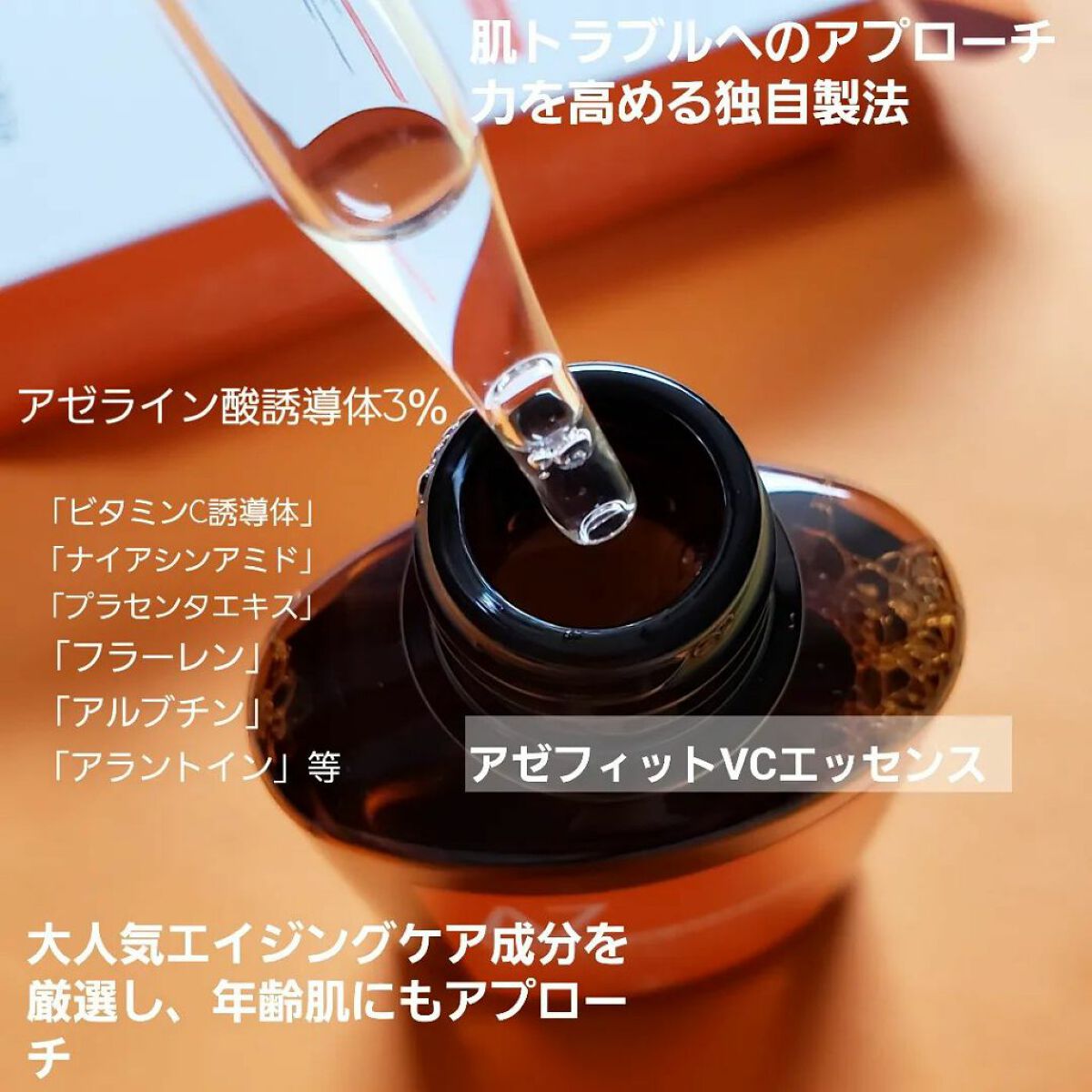 \話題のアレで大人の年齢肌悩みに応える/『NIKIPITA』アゼフィットVCエッセンスもう知ってる人が多い今話題のアゼライン酸。厳選された24種類の美容成分×高濃度。アゼライン酸*×ビタミンC*をリポソーム技術によりニキビケアだけでなく、年齢...