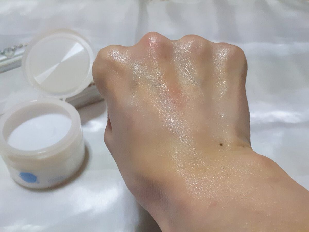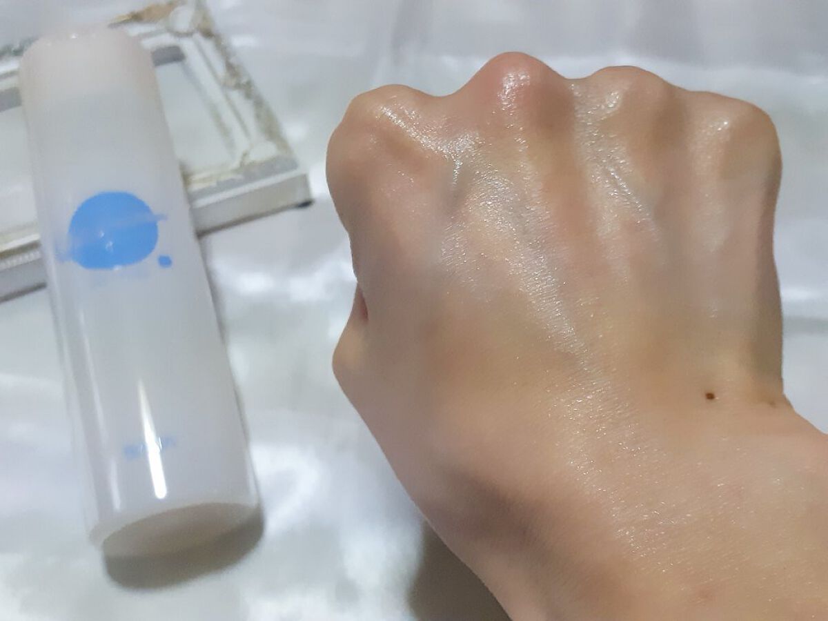 パフで出した時は3色分かれて出てくるけど、肌に乗せると混ざり合って透明感が出ます。 付属のブラシで使ってみたら均一に、透明感のあるサラサラとしたお肌になりました。 ブラシの時は、本体は少し斜めにして粉を出してました。肌に乗せるとナチュラルにツヤッとした感じがいいなと思います。