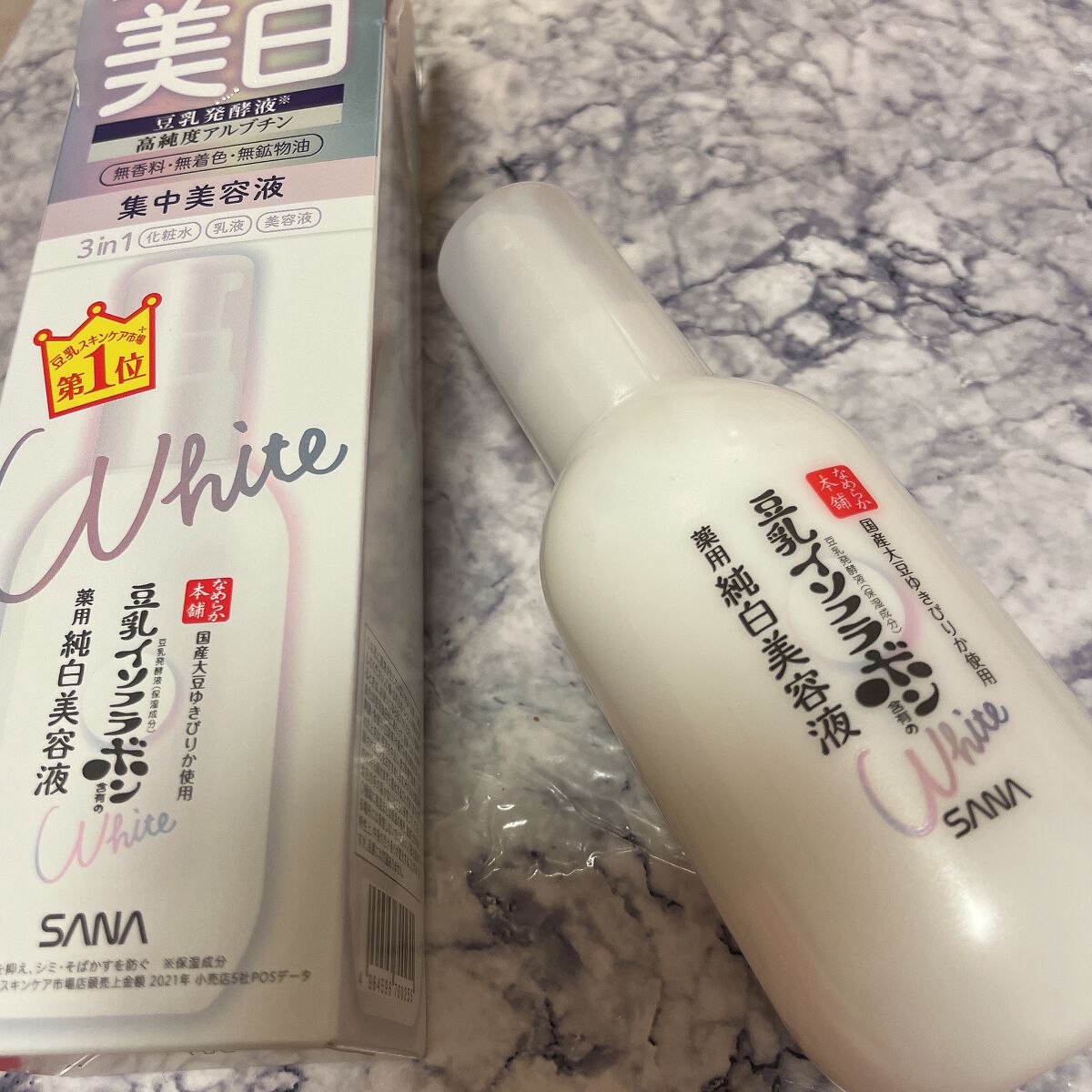 - 美白*ライン共通成分*1に加え、ビタミンC・E誘導体*2を配合。透明感とうるおいにあふれたお肌に導く美容液です。1つ3役(化粧水、美容液、乳液)で、時短スキンケアが出来ます。 *メラニンの生成を抑え、シミ・そばかすを防ぎます。 *1 豆乳発酵液(保湿成分)、アルブチン(美白有効成分)、肌荒れ防止有効成分 *2 dl‐α‐トコフェロール 2‐L‐アスコルビン酸リン酸ジエステルカリウム塩(保湿成分)