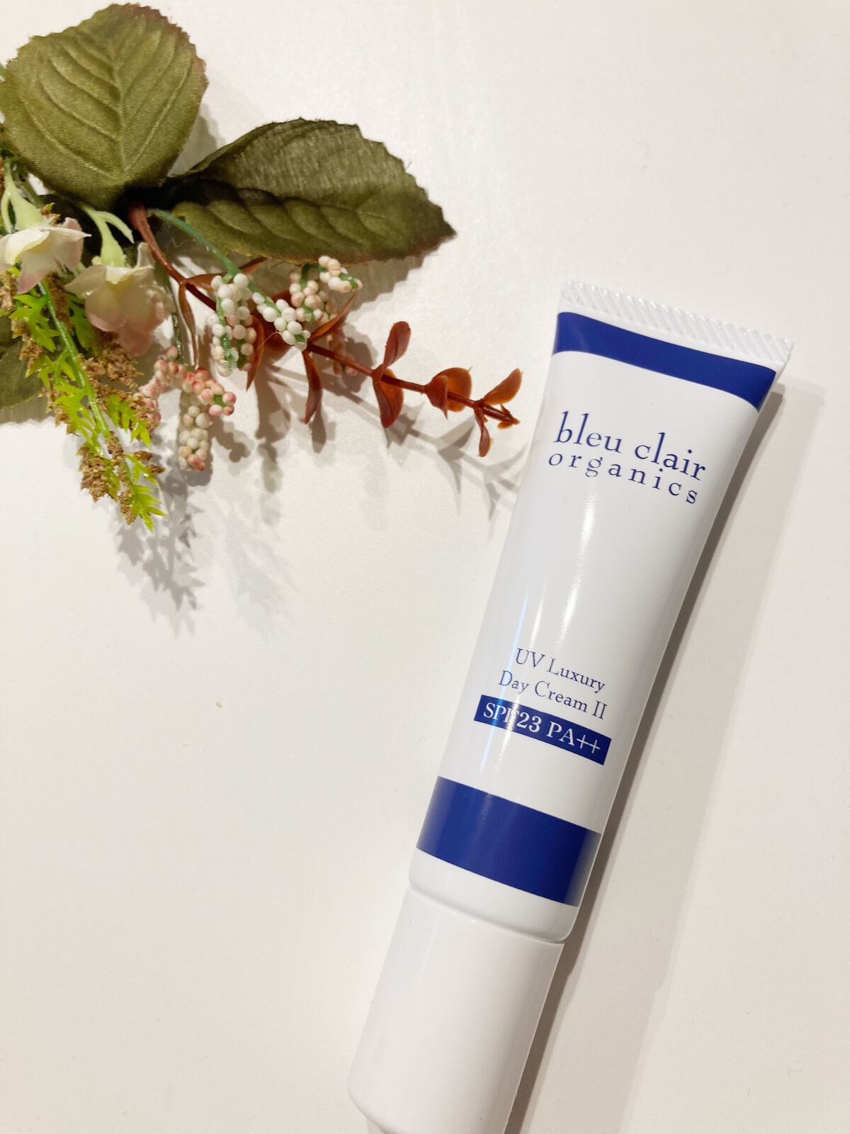 【ラグジュアリーなUV】ブルークレール新UVラグジュアリーデイクリームSPF28PA+++軽くて優しい付け心地🫶🏻まるで乳液みたいなテクスチャーが好きです。スマホなどからも出るブルーライトに考慮した処方だそう。国産オーガニックなのが嬉しい。白...