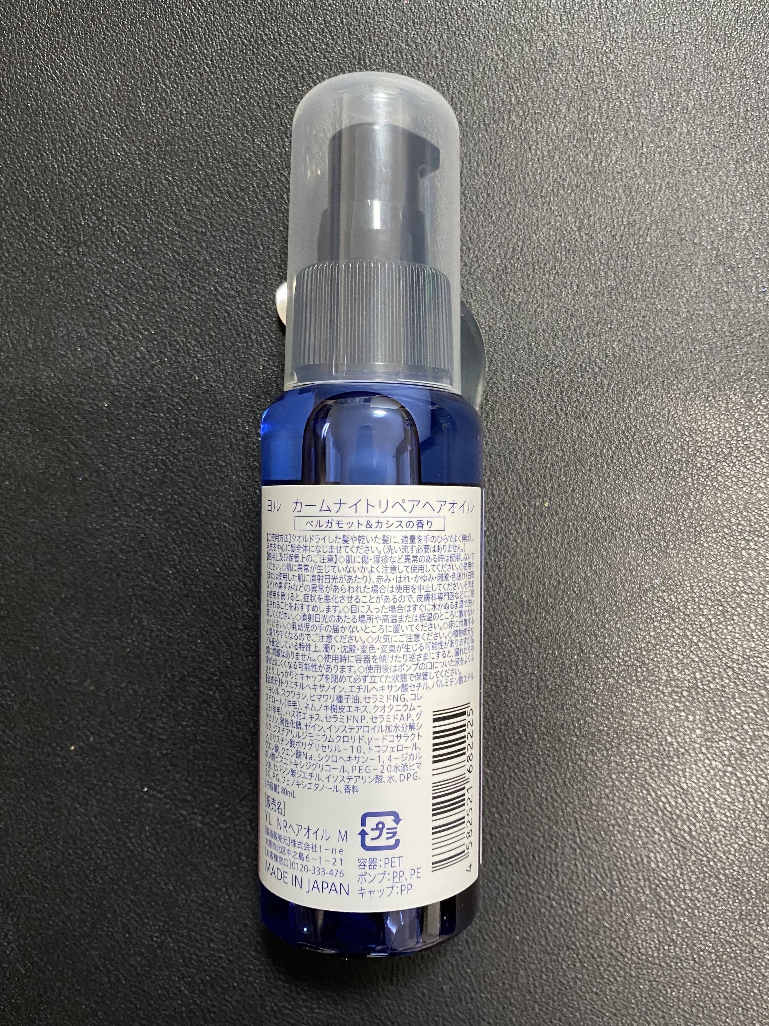 - ヘア&ボディ用マルチ美容オイル。 ボディにも使えるノンシリコン処方で、しっとりうるツヤ髪へ。 ナイトキャップ処方で睡眠中の摩擦・乾燥ダメージから髪を守り、地肌に潤いを与える美容液成分配合。 シリコン、パラベン、鉱物油、合成着色料フリー ◎ベルガモット&カシスの香り